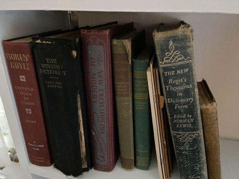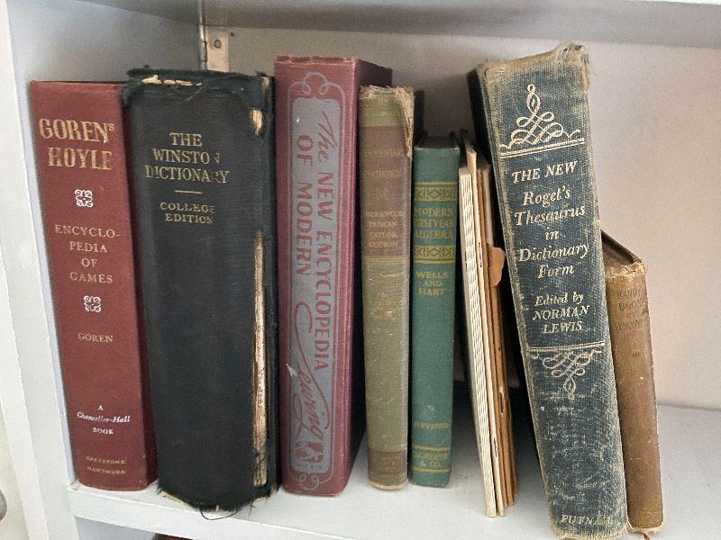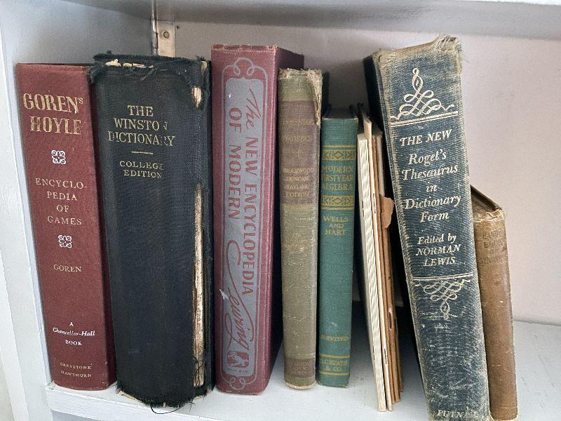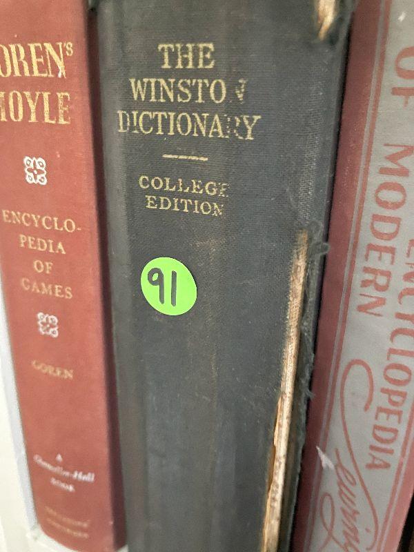 Dictionary, Thesaurus and more. Please review all photos. First photo shows all that is in the lot, unless otherwhise noted. All items sold AS IS-WHERE IS. Please bring help for larger lots, and boxes or bags to remove your lots.