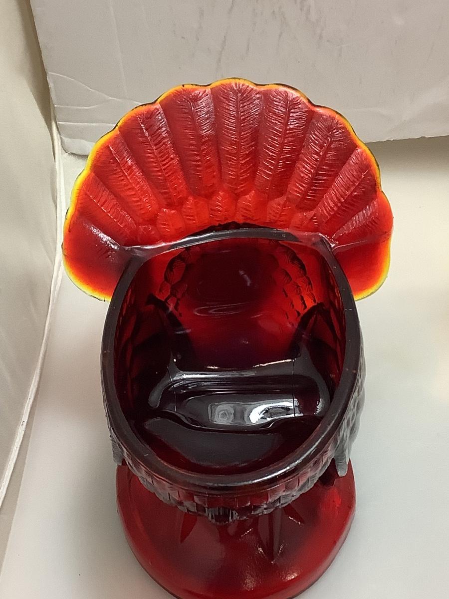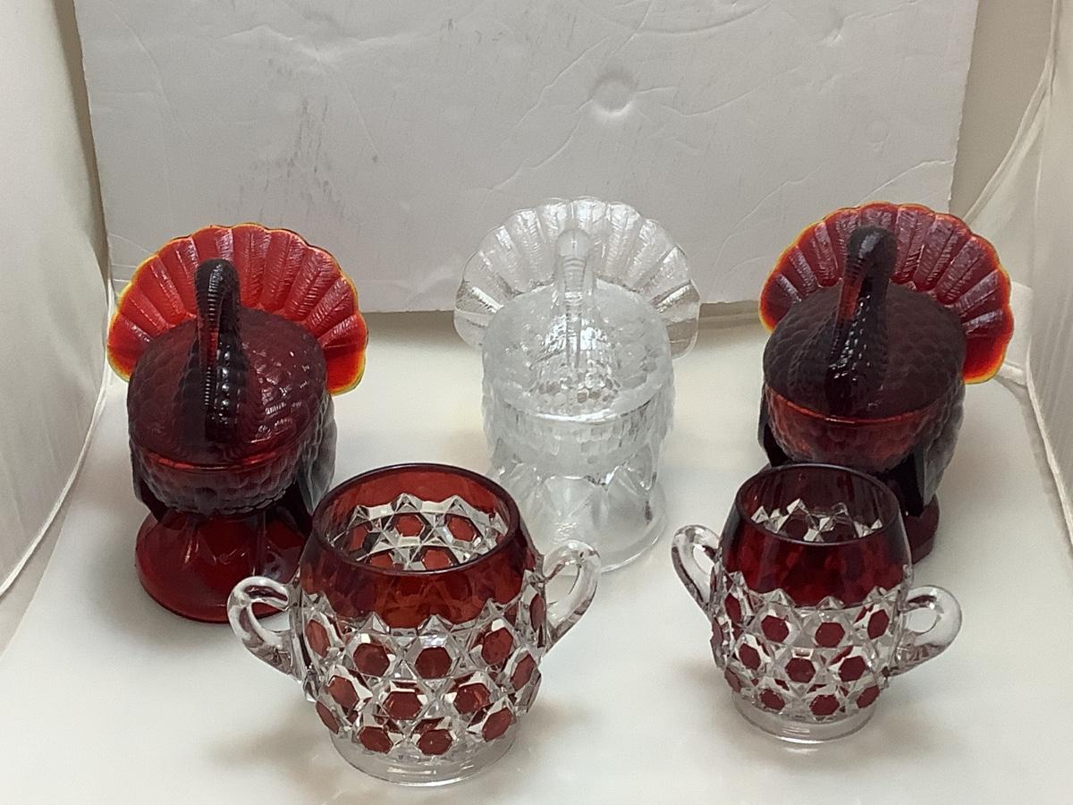 F954 Set of Two Ruby Flash Glass Sugars, with Turky Condiment Holders
