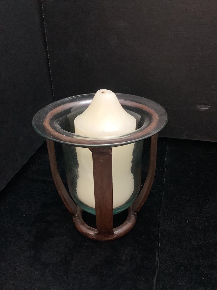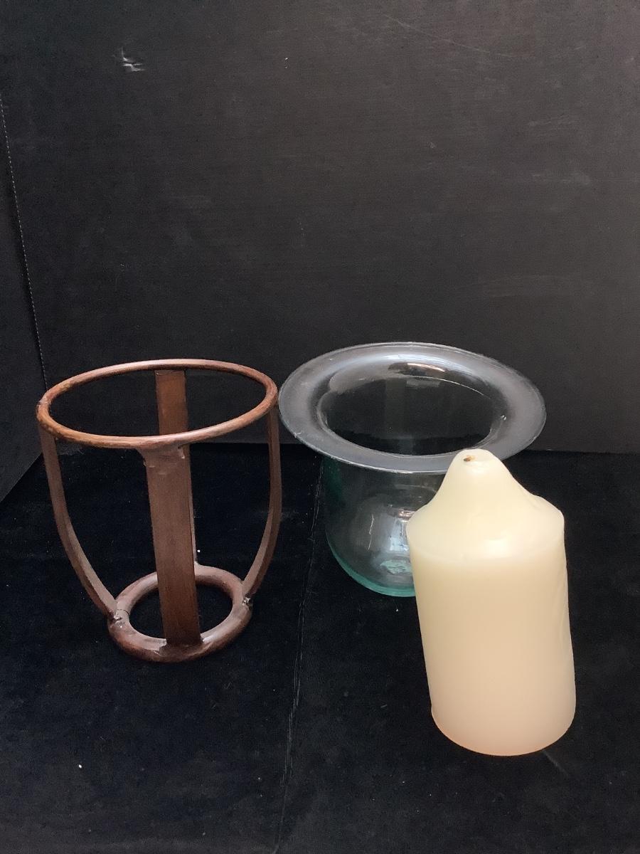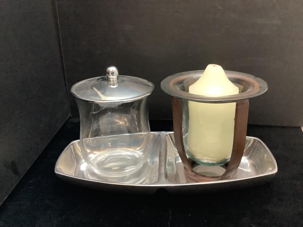 F966 Aluminum Tray with Candle Holder, Covered Glass Jar