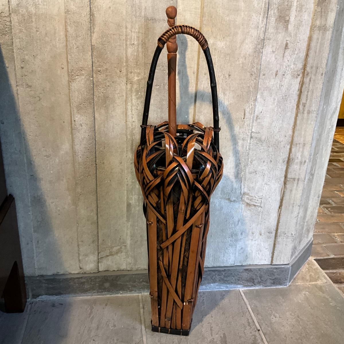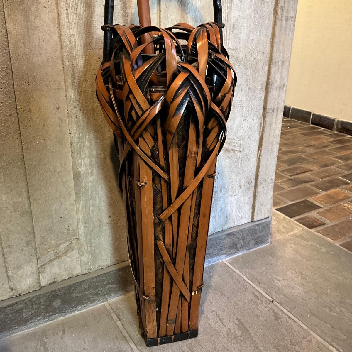 FA604 Vintage 19th C. Asian Ikebana Bamboo Basket Umbrella Stand
