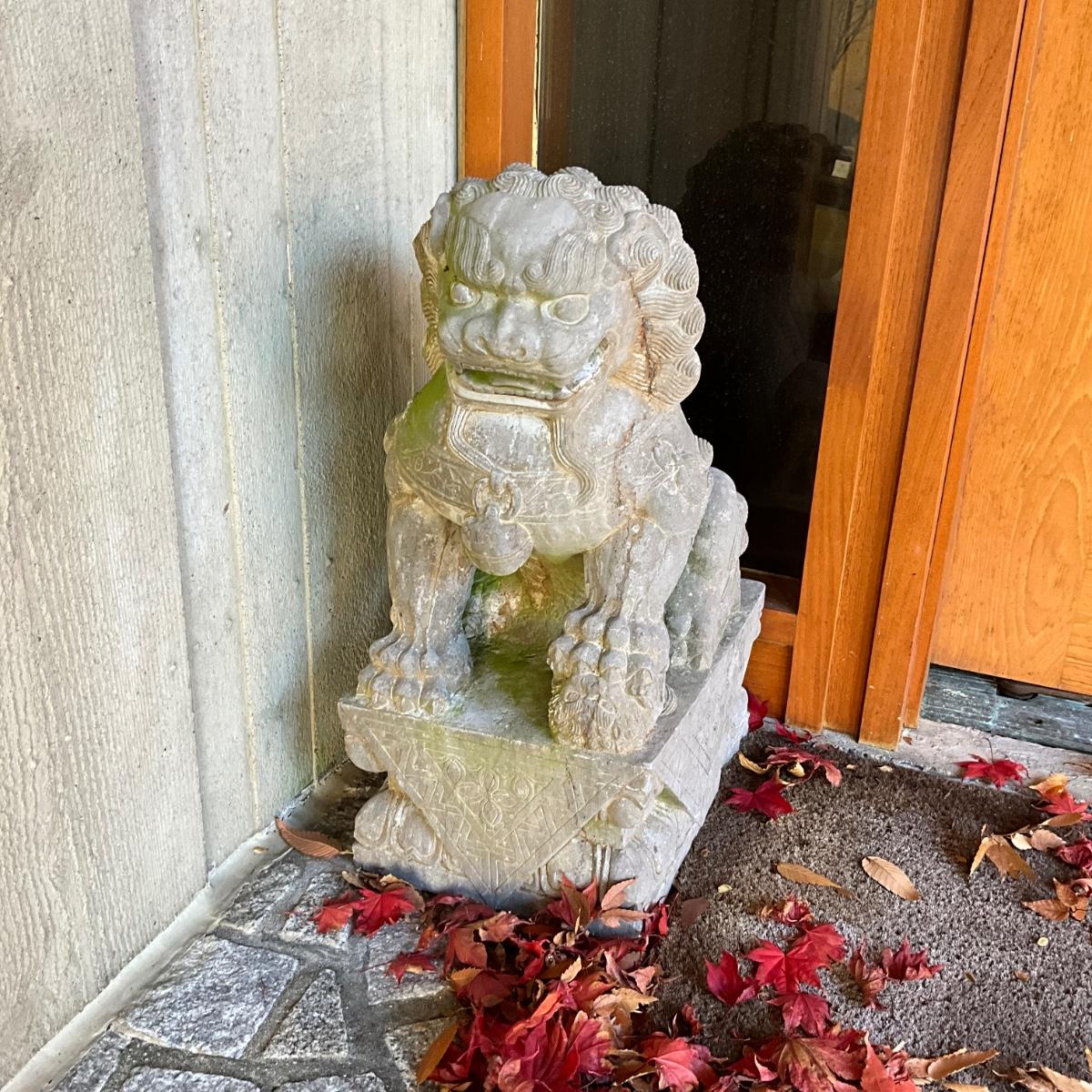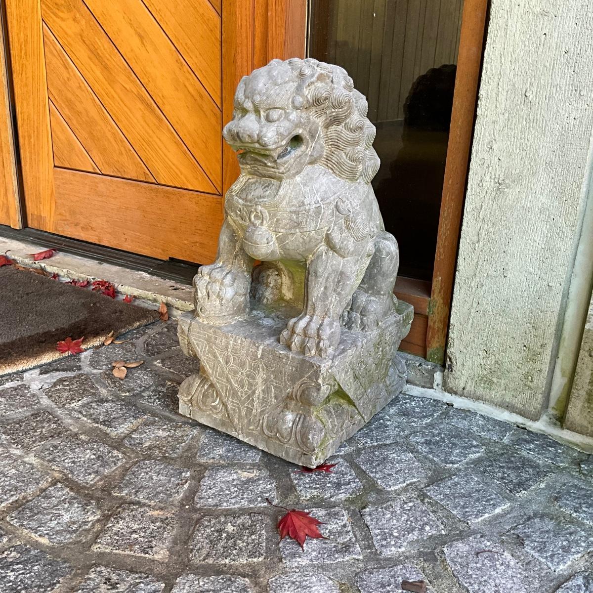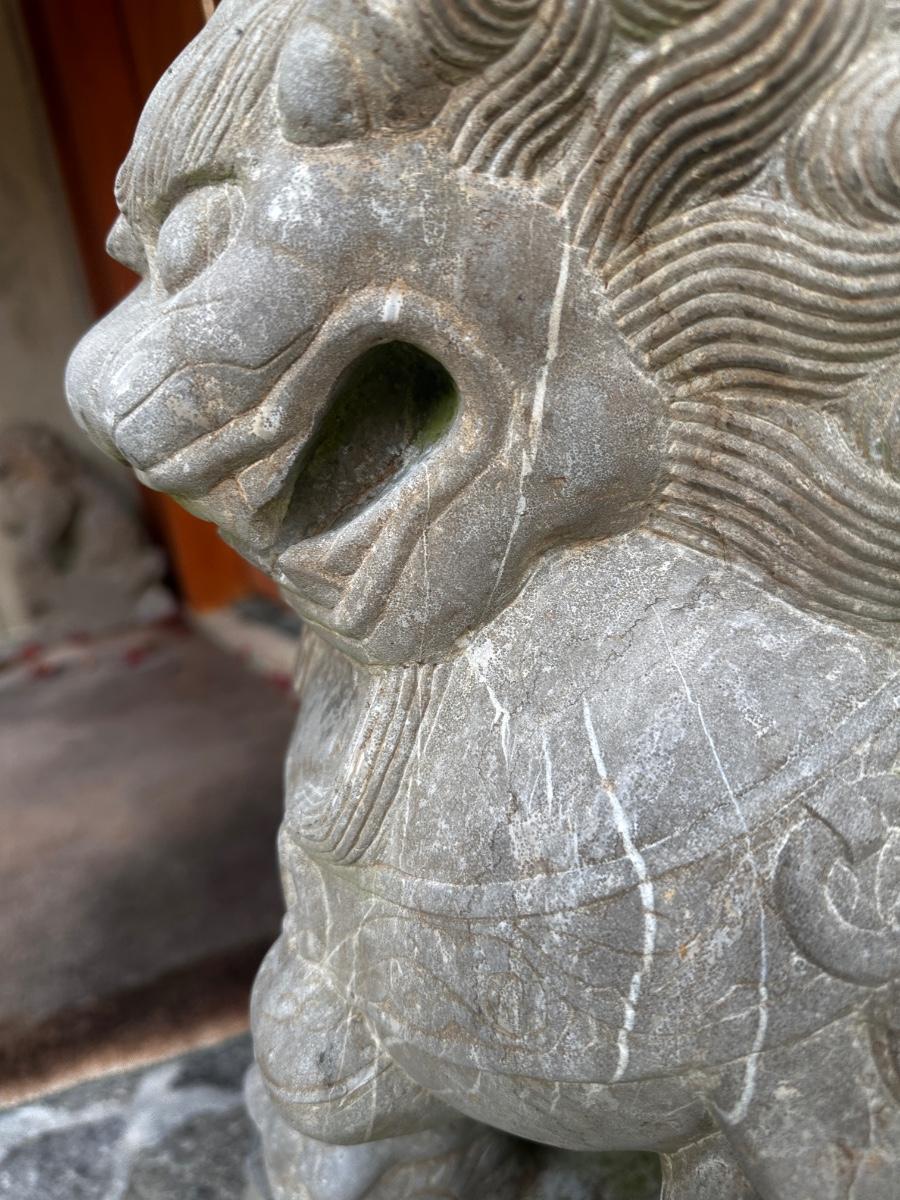 FA605 Pair of Carved Marble Chinese Foo Dogs Garden Statues