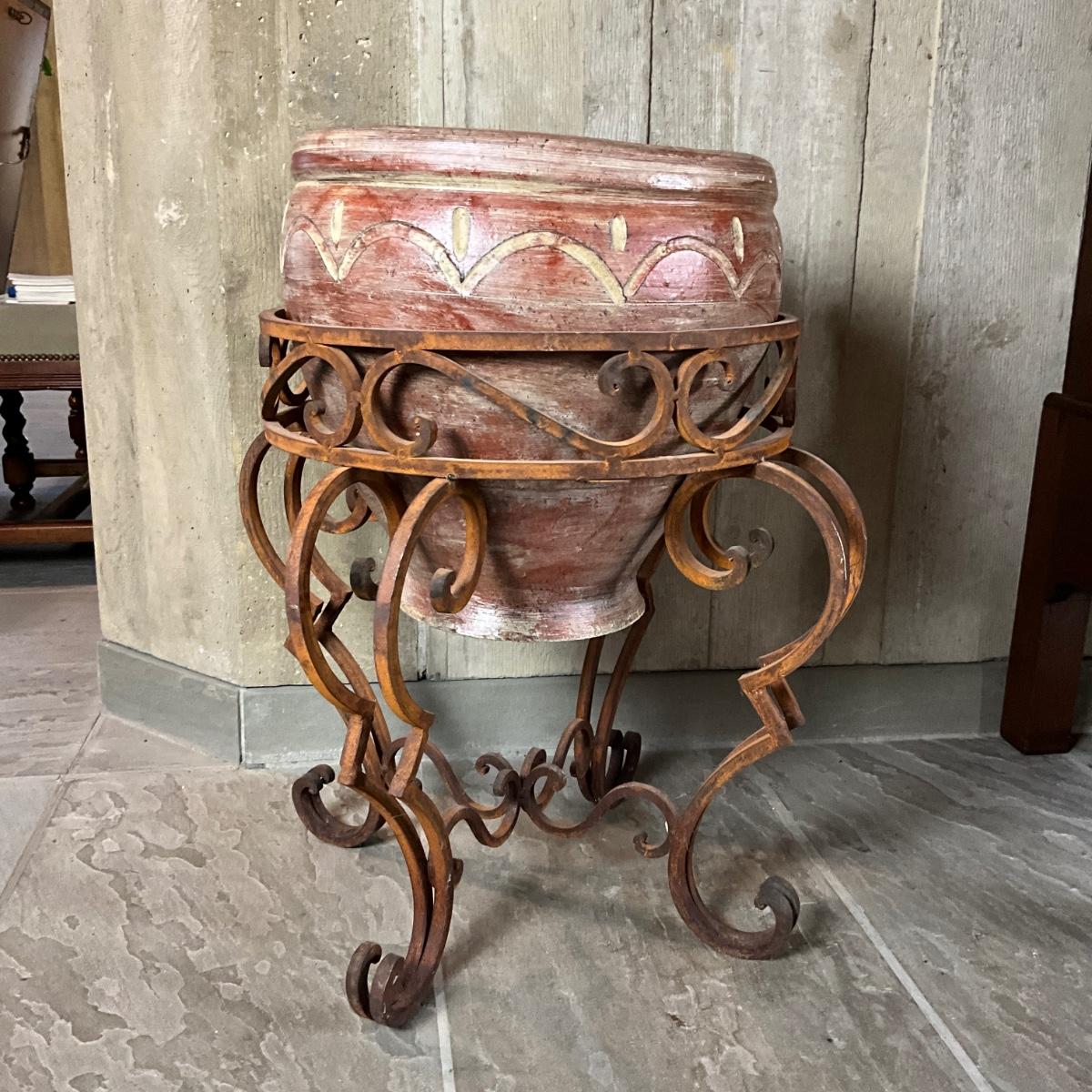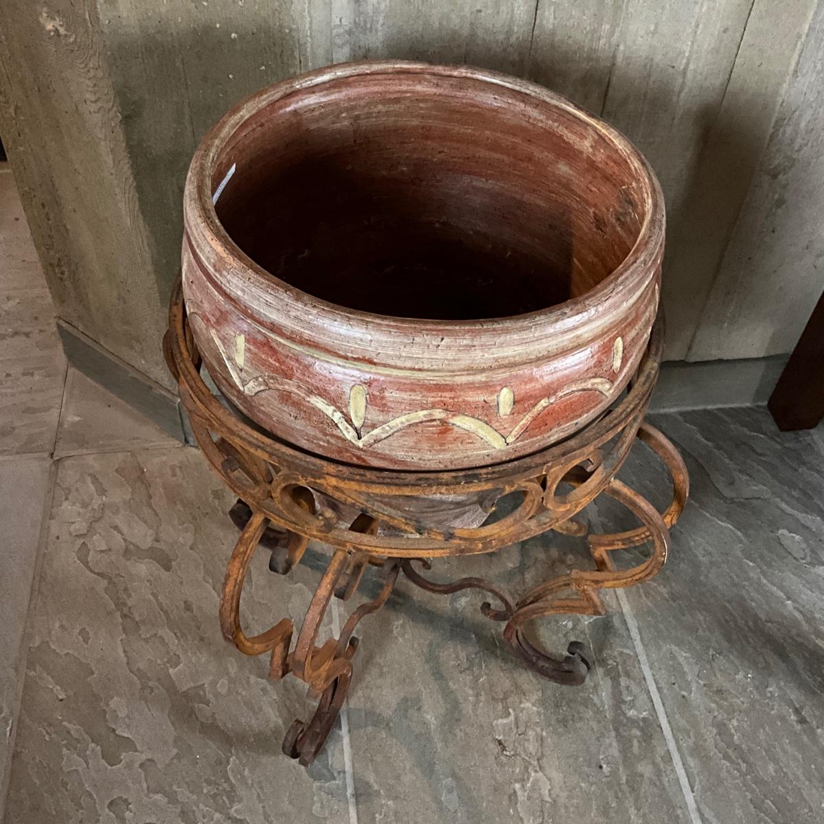 FA607 Large Terra Cotta Pot on Wrought Iron Stand