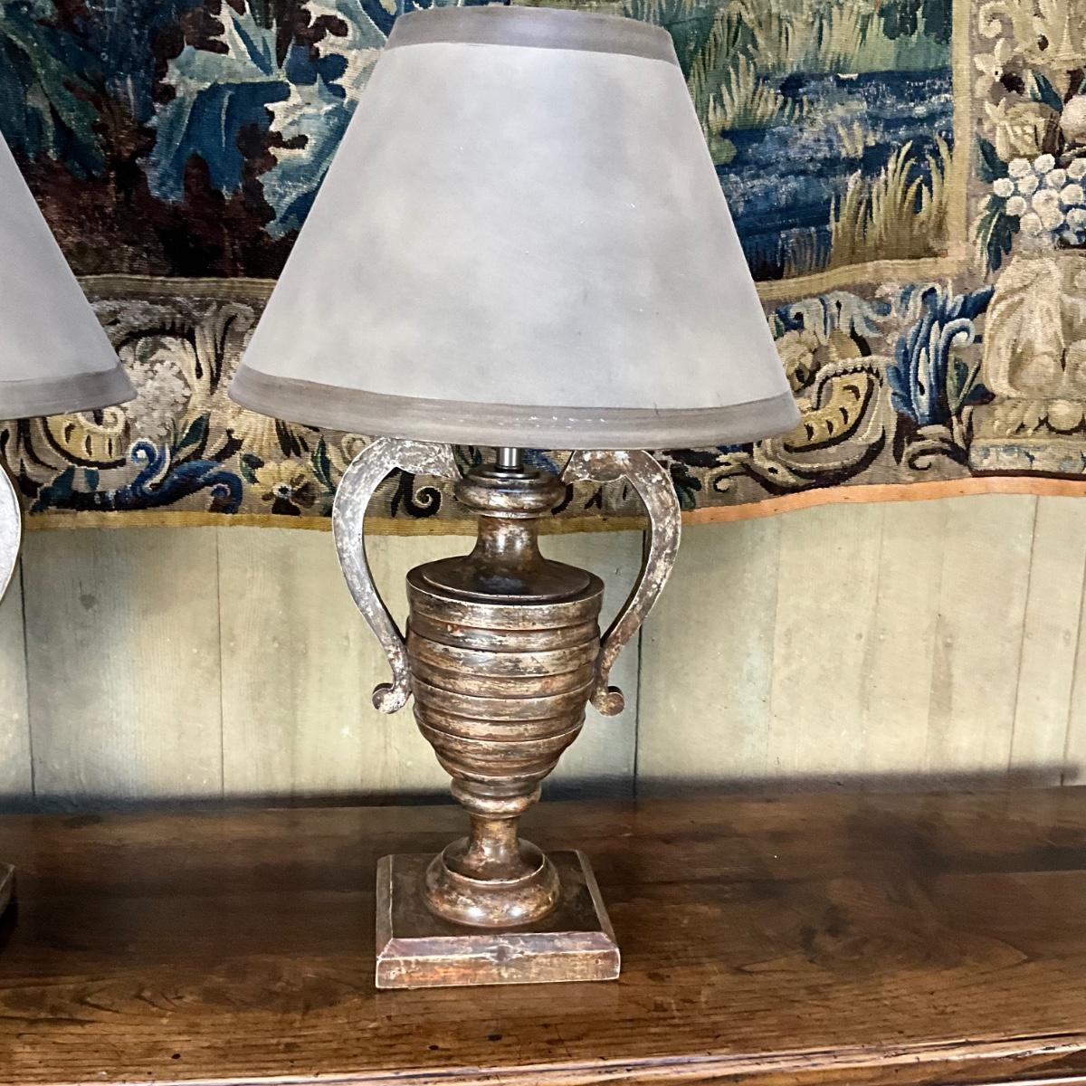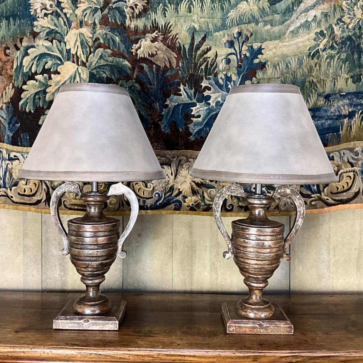 Grey decorative lamps with a brown glaze urn style lamps with shades