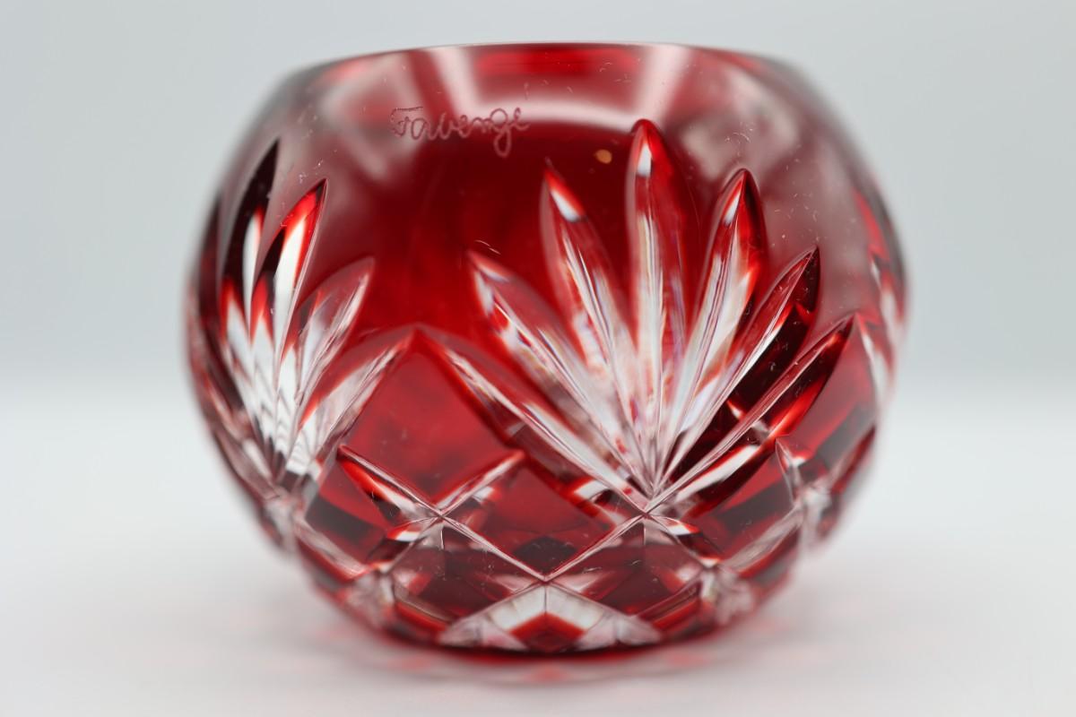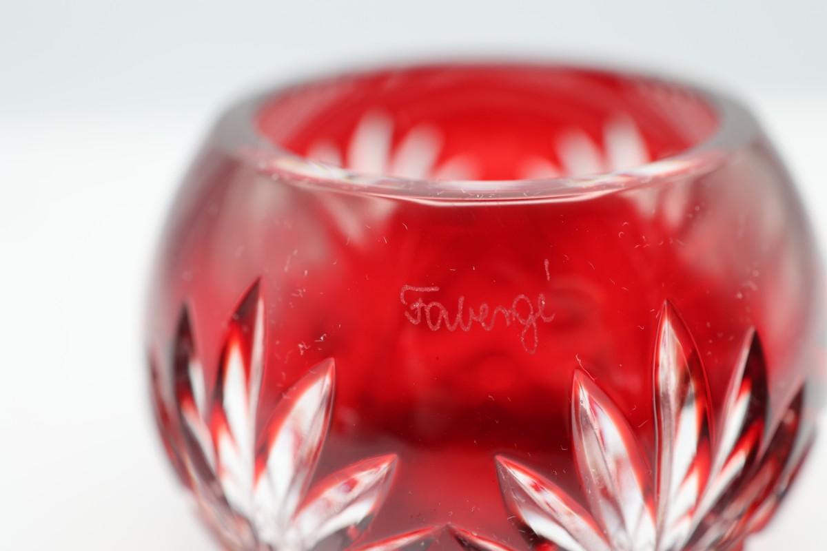FABERGE Ruby Cut To Clear Crystal Candle Holder