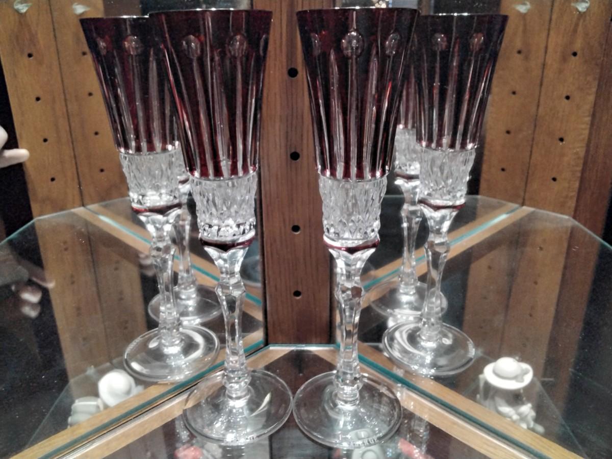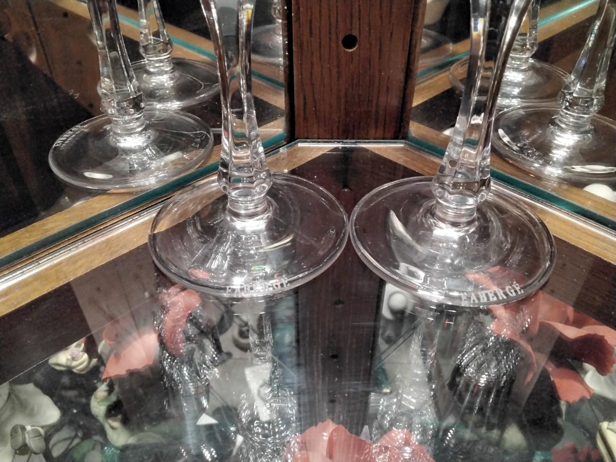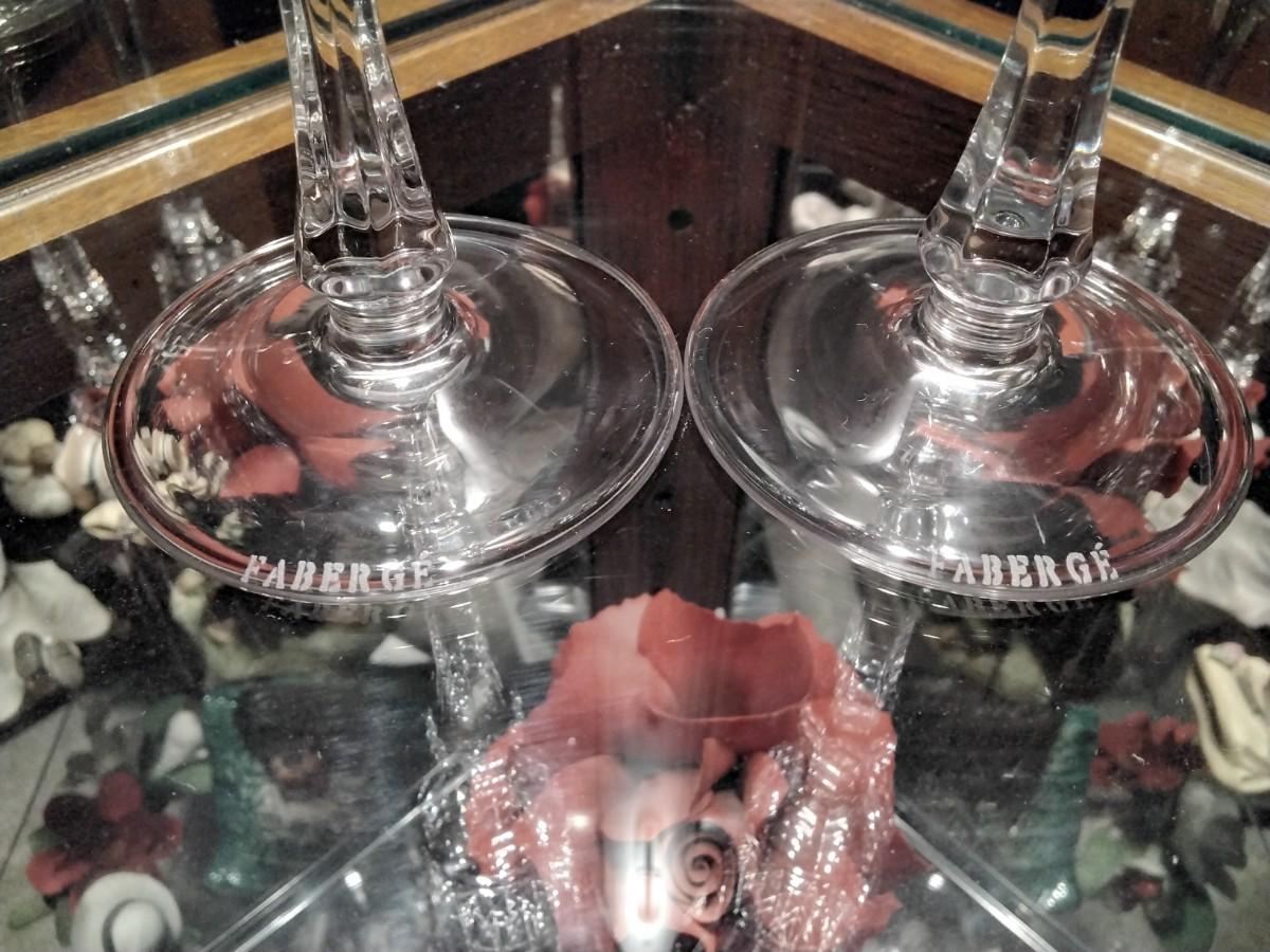 2 FABERGE XENIA Cased Cut to Clear Crystal CHAMPAGNE FLUTE GLASSES Genuine 24% Lead Crystal SIGNED/Etched "Faberge" on the rim of each glass. Pre-owned, Unused, kept in storage. With Blue Silk inside and. Velvet covered Faberge Presentation Case. Height is approx: 8-7/8" Width across the mouth is approx: 2-1/4" When filled to the rim, holds approx. 4 oz.