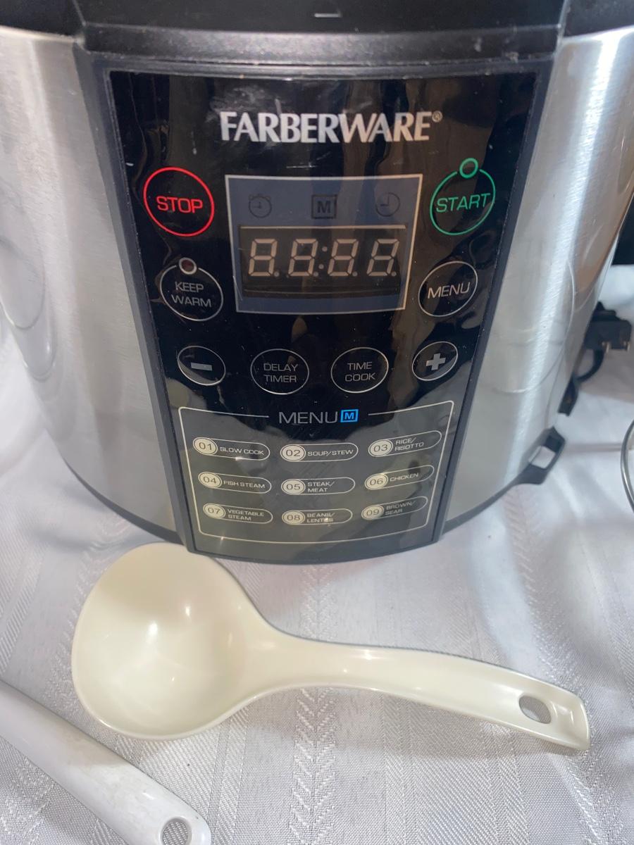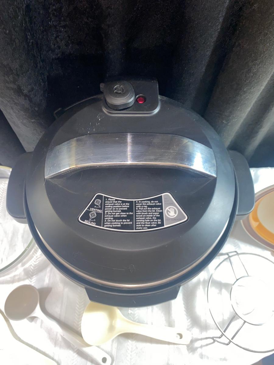 FABERWARE 6-QUART ELECTRIC PRESSURE COOKER WITH UTENSILS, ANCHOR, HOCKING, CAKE, PAN AND SERVING BOWL