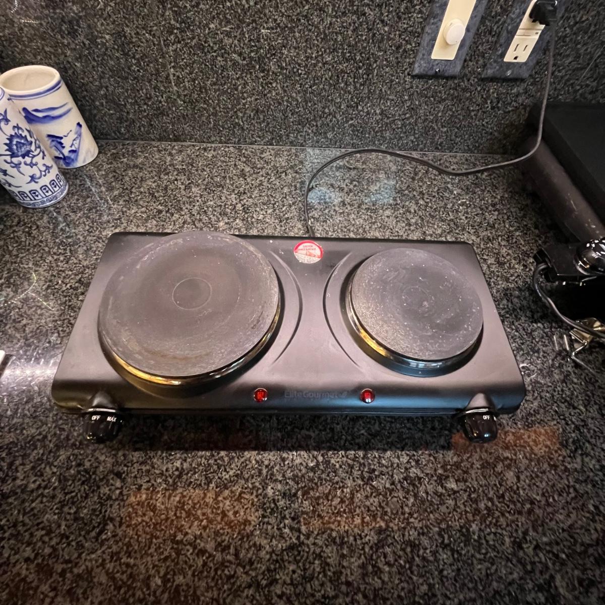 All of these items powered on when plugged in. The Farberware is a rotisserie grill. An Elite Gourmet electric burner is also included plus a griddle, roasting pan, another large roasting pan with black stand and a digital cooking thermometer/timer. Thermometer was not tested as the battery is likely dead.