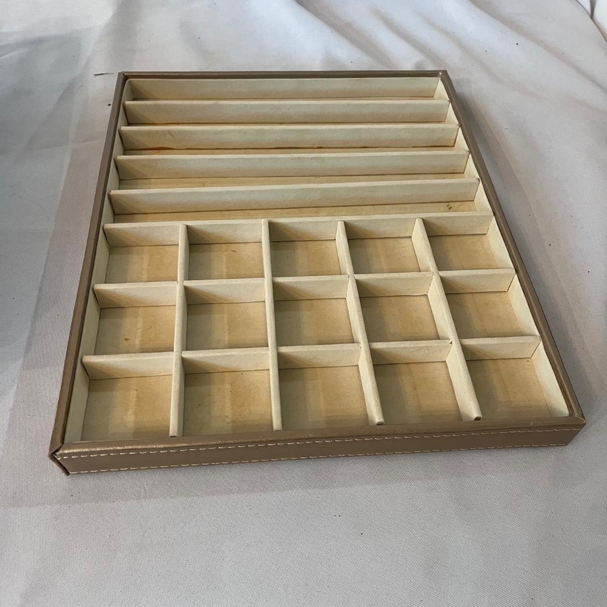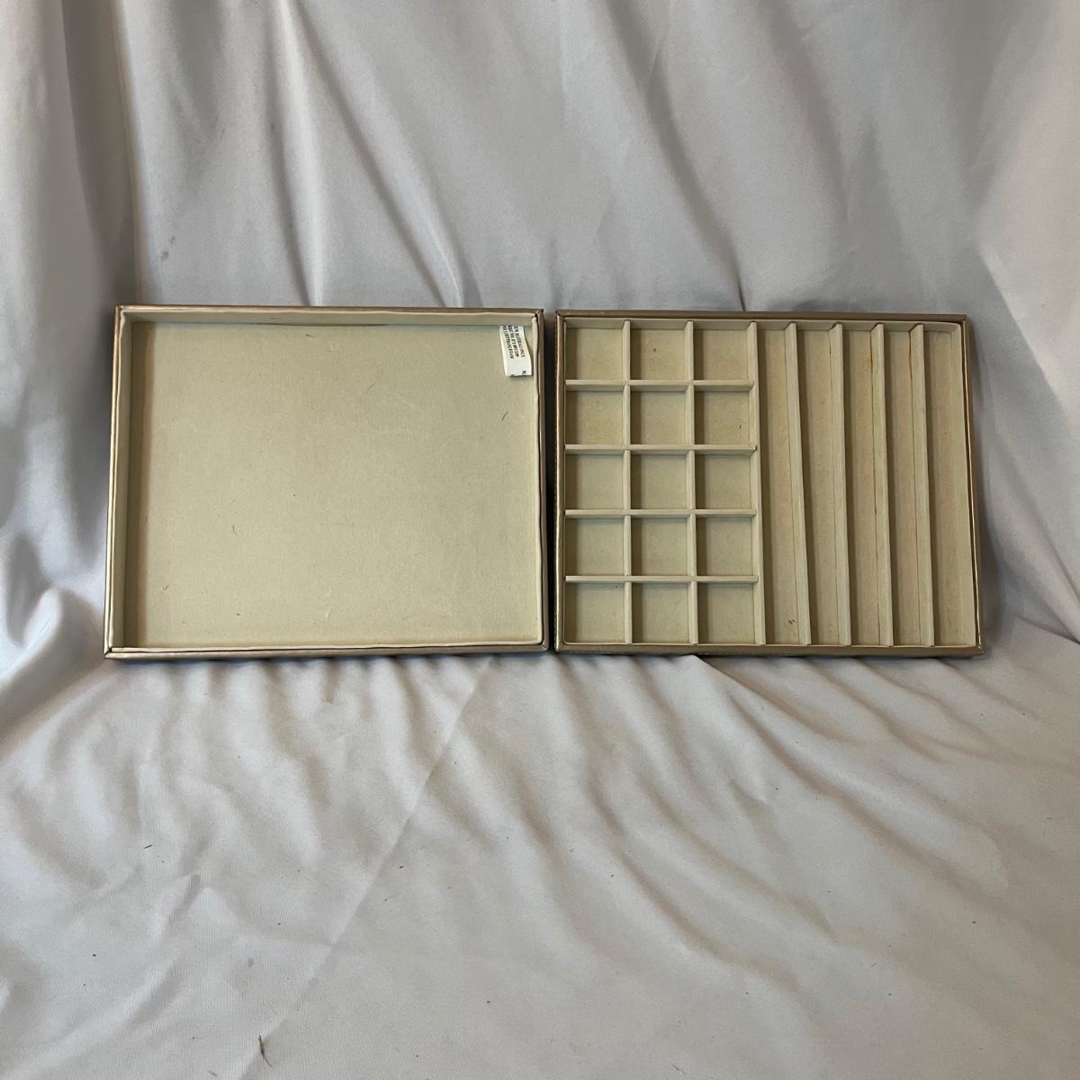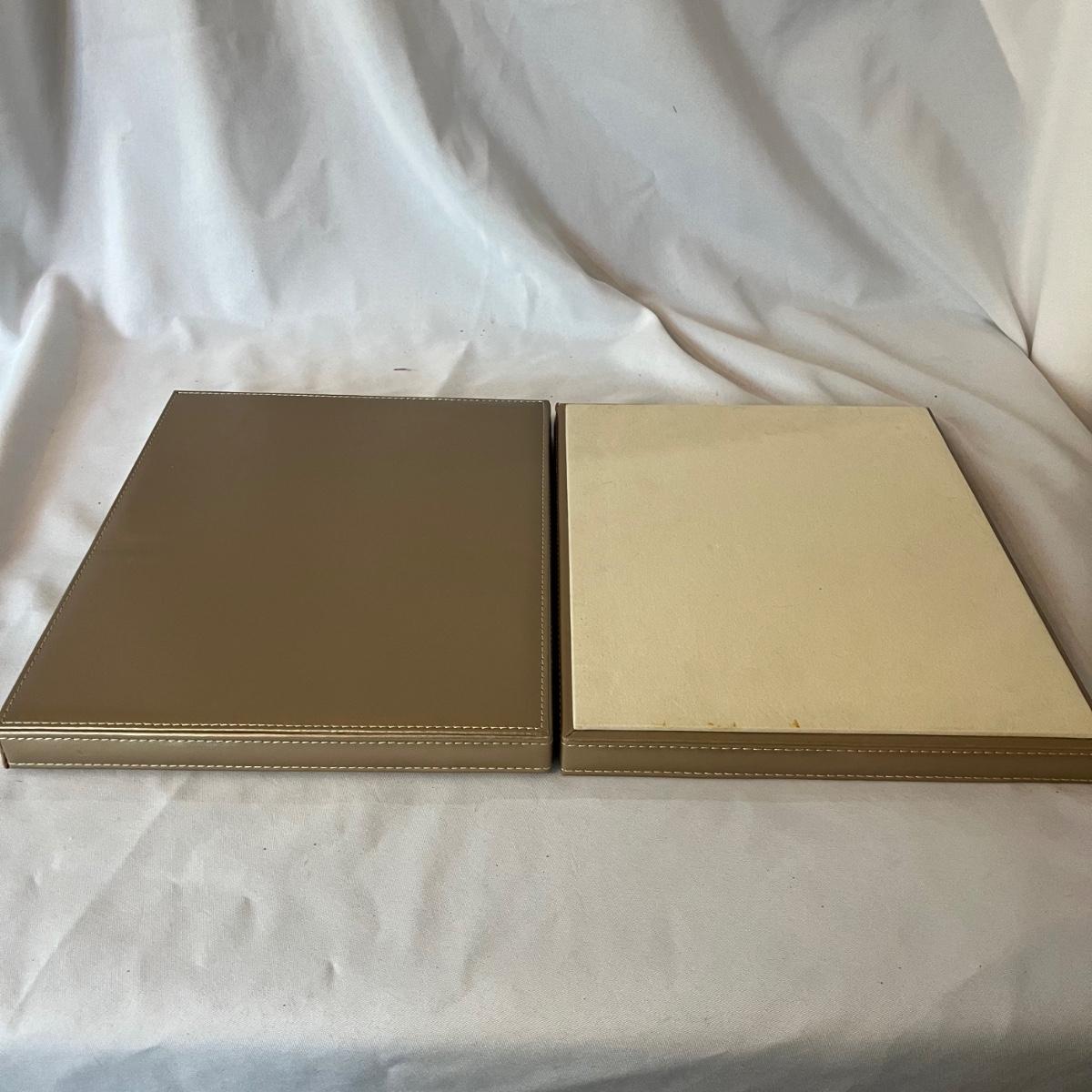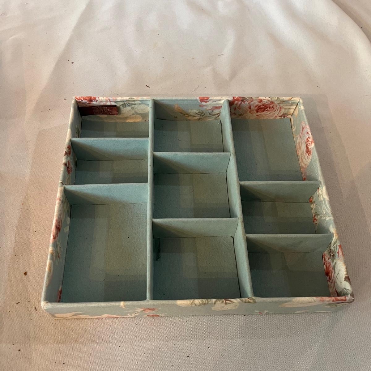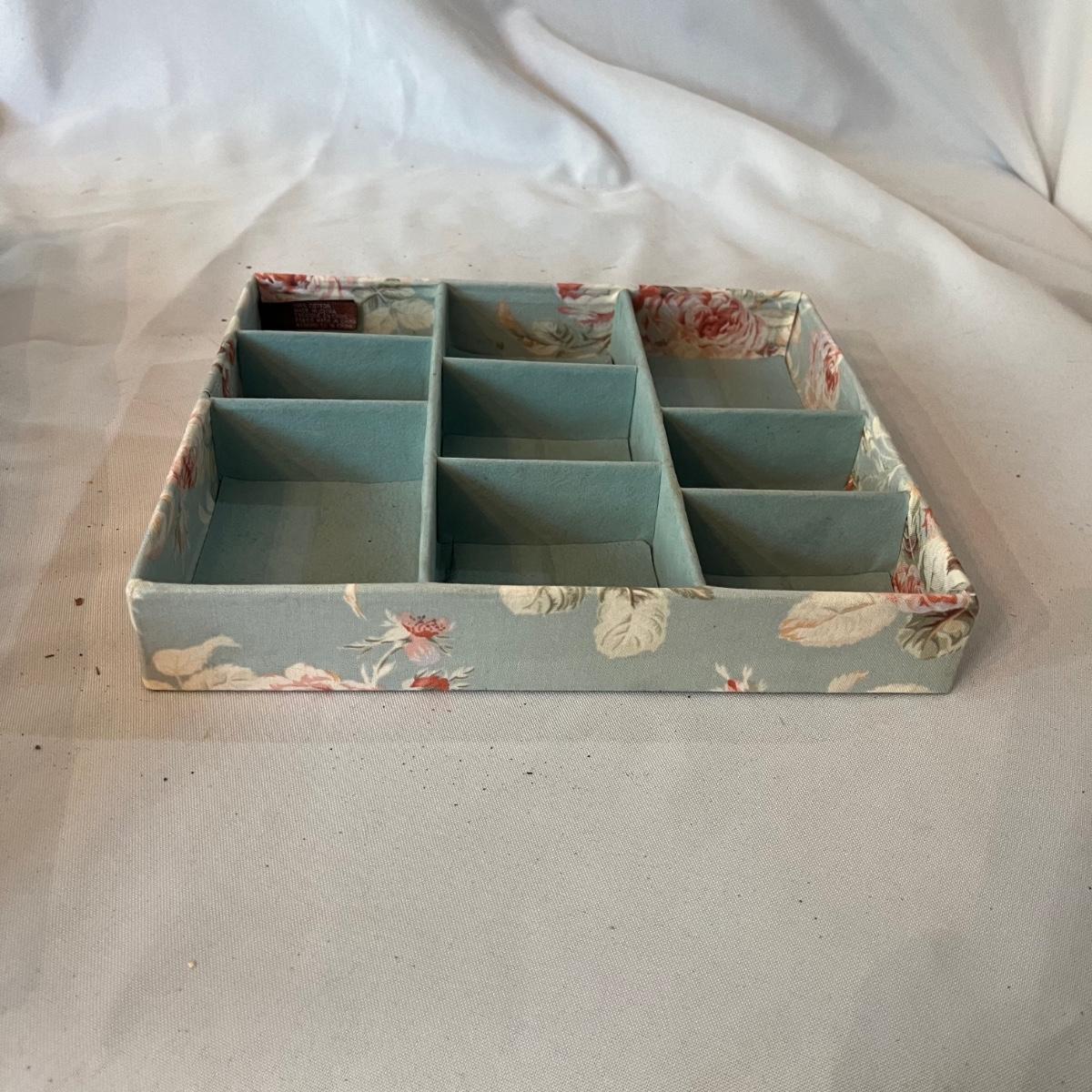 Lot includes three floral design fabric covered organizing trays and two matching fabric covered organizing trays. Largest trays measure 9” x 16” 1.75”H.