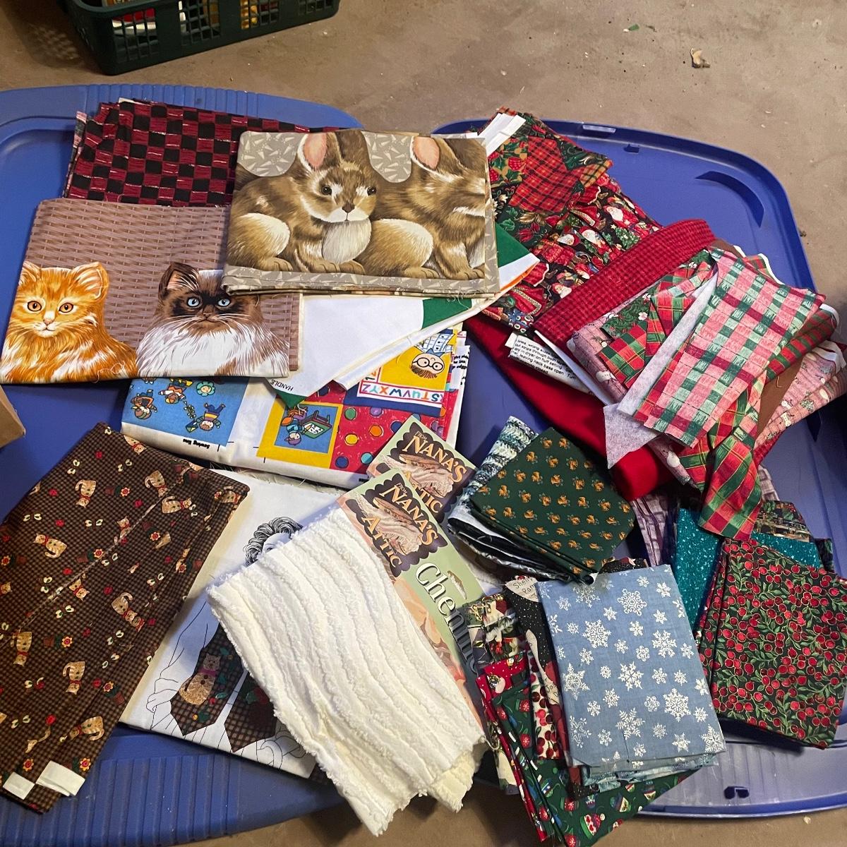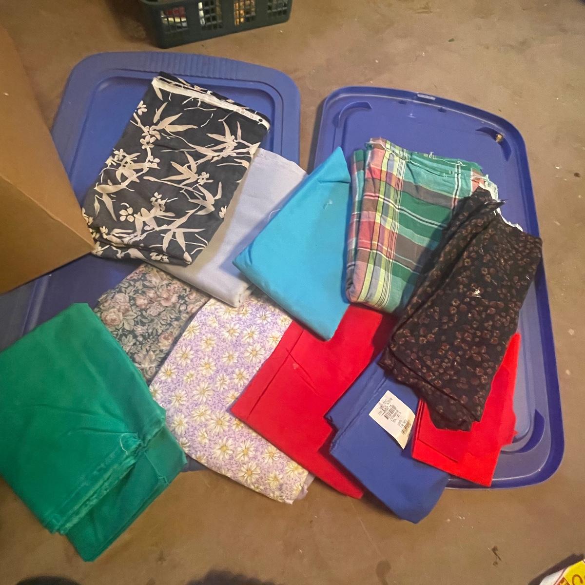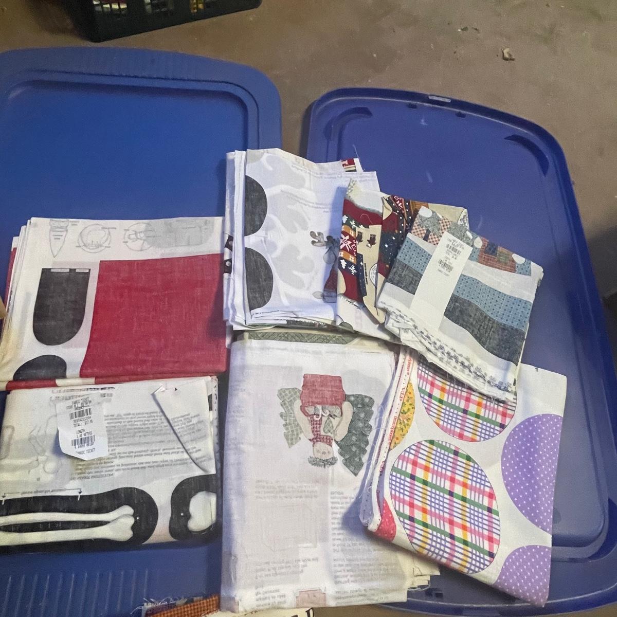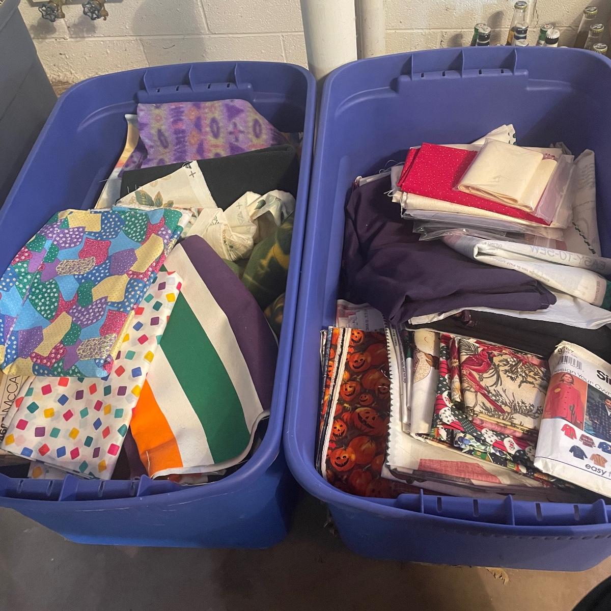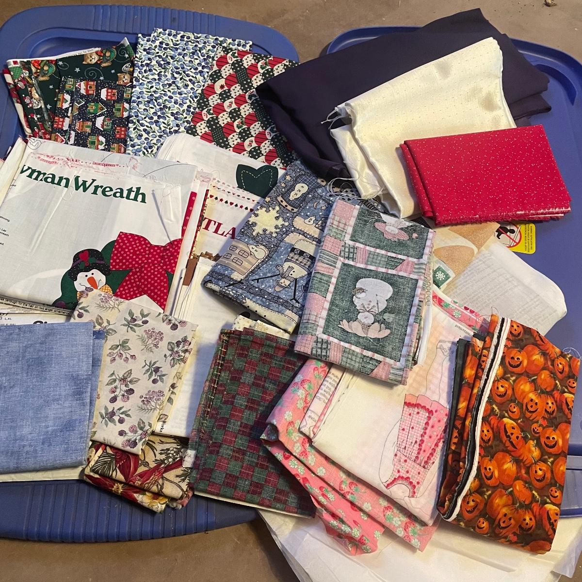 This huge lot of fabric appears to mostly be about 2 yards each and there are lots of them! Includes a large assortment of V.I.P Bears fabric. See images to see the wide range of colors. Blue tubs are not included.