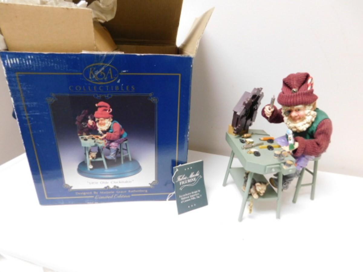 Fabric Mache 'Little Olde Clockmaker' Figurine by Marjorie Grace Rothenberg with Original Box