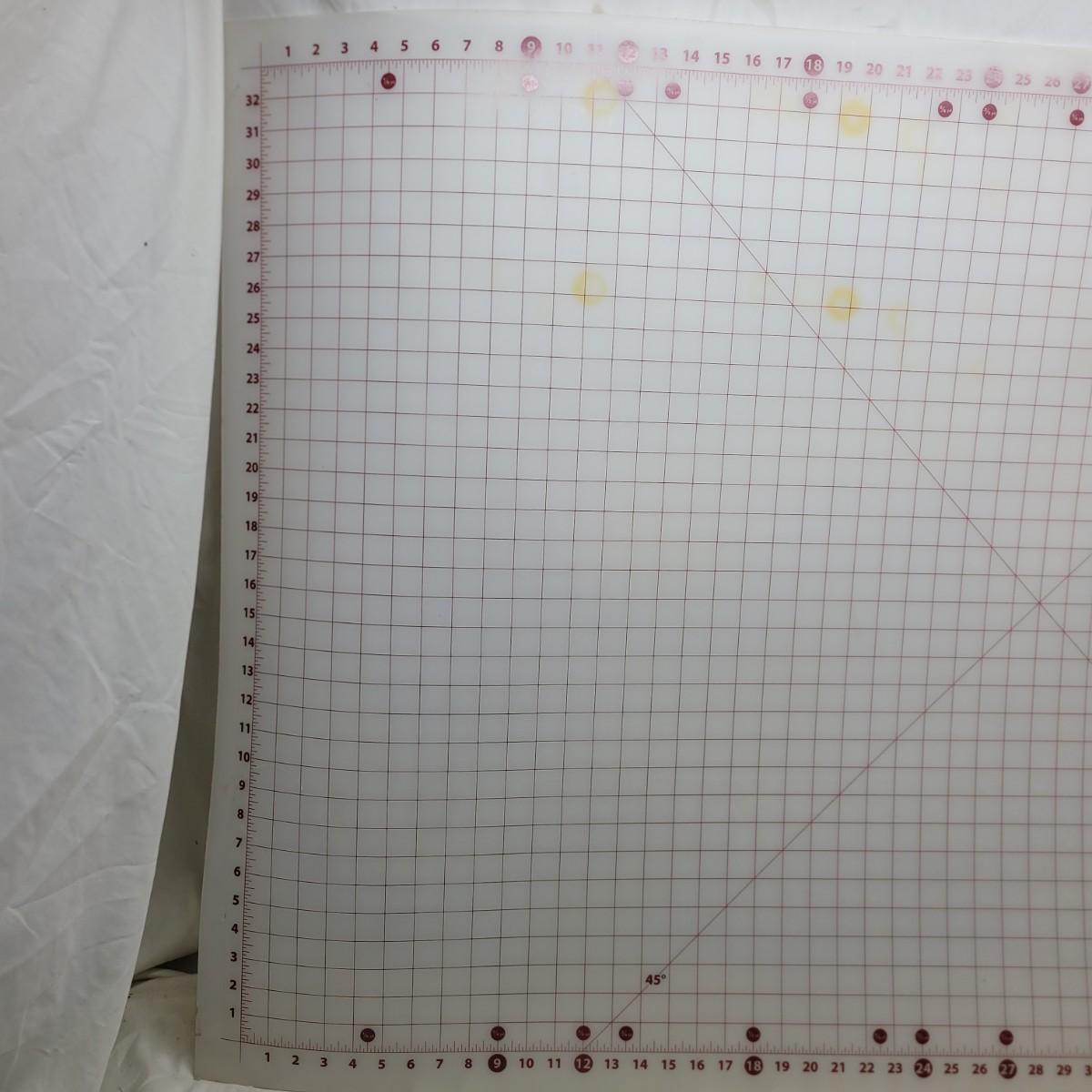 The mat has a 1-inch grid layout with numbers placed on the outside of the grid to prevent them from being cut off.