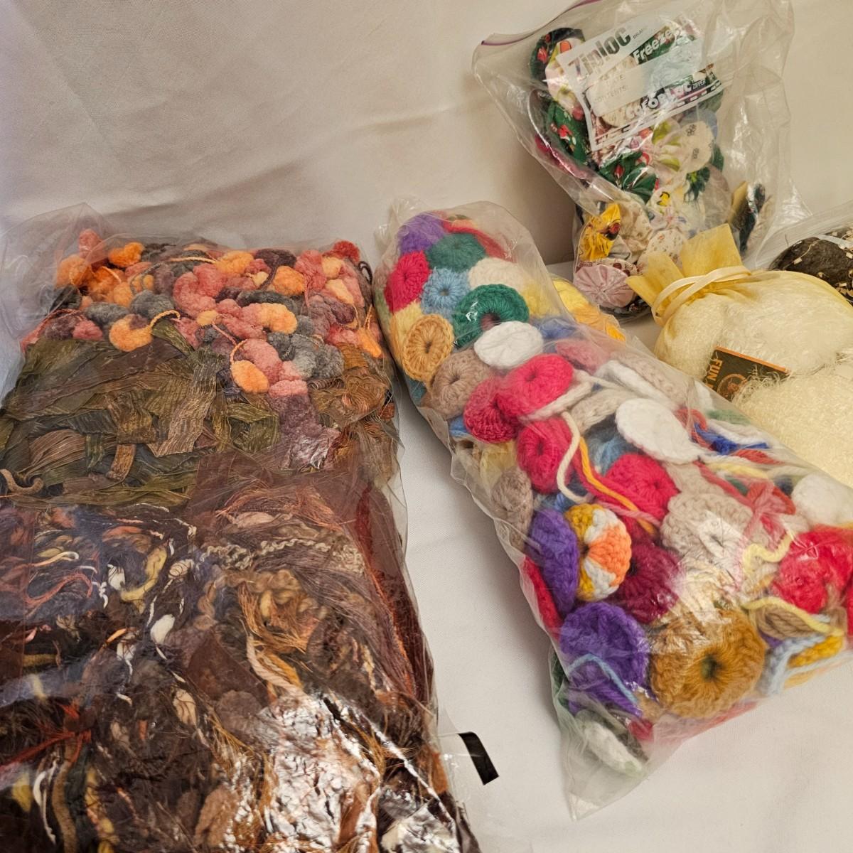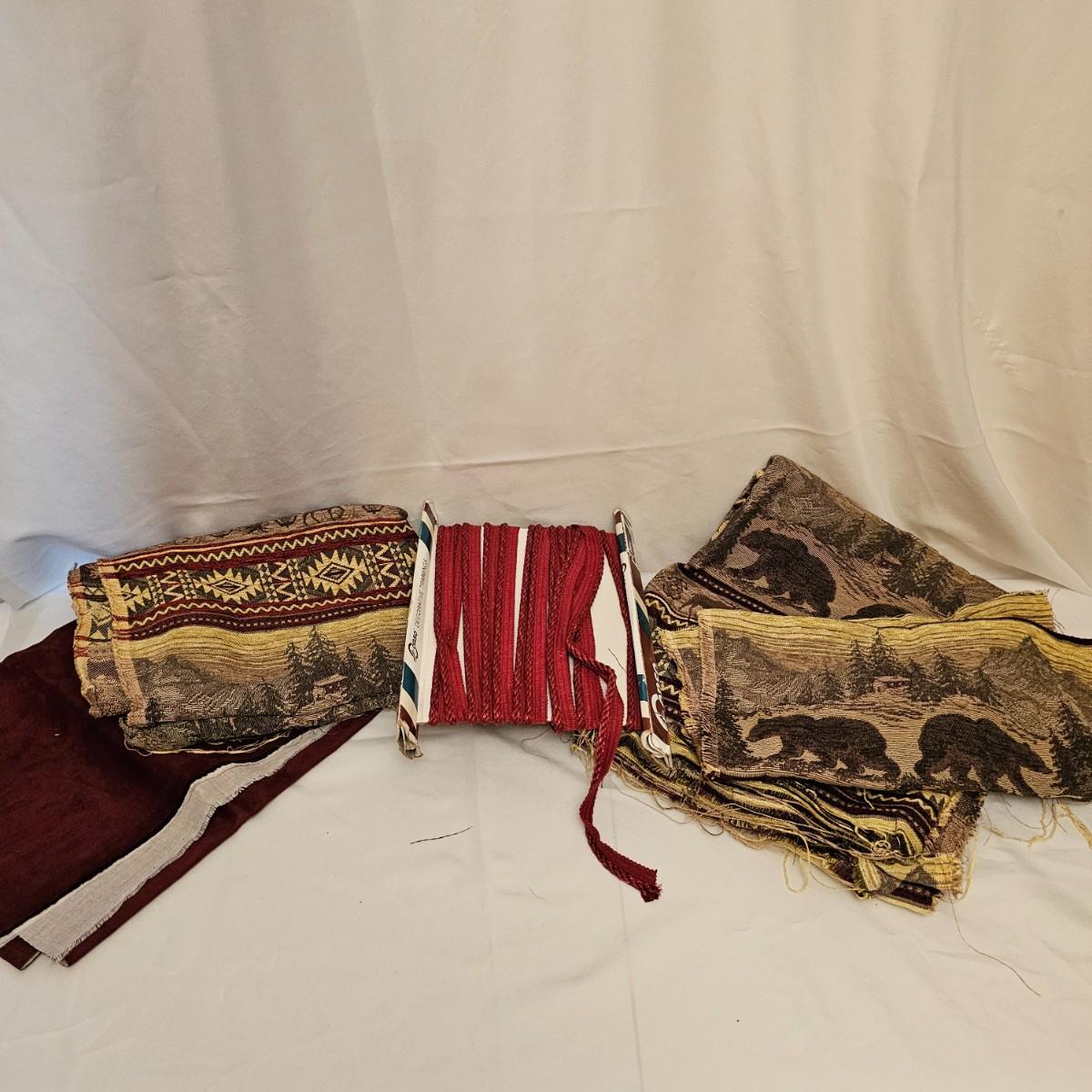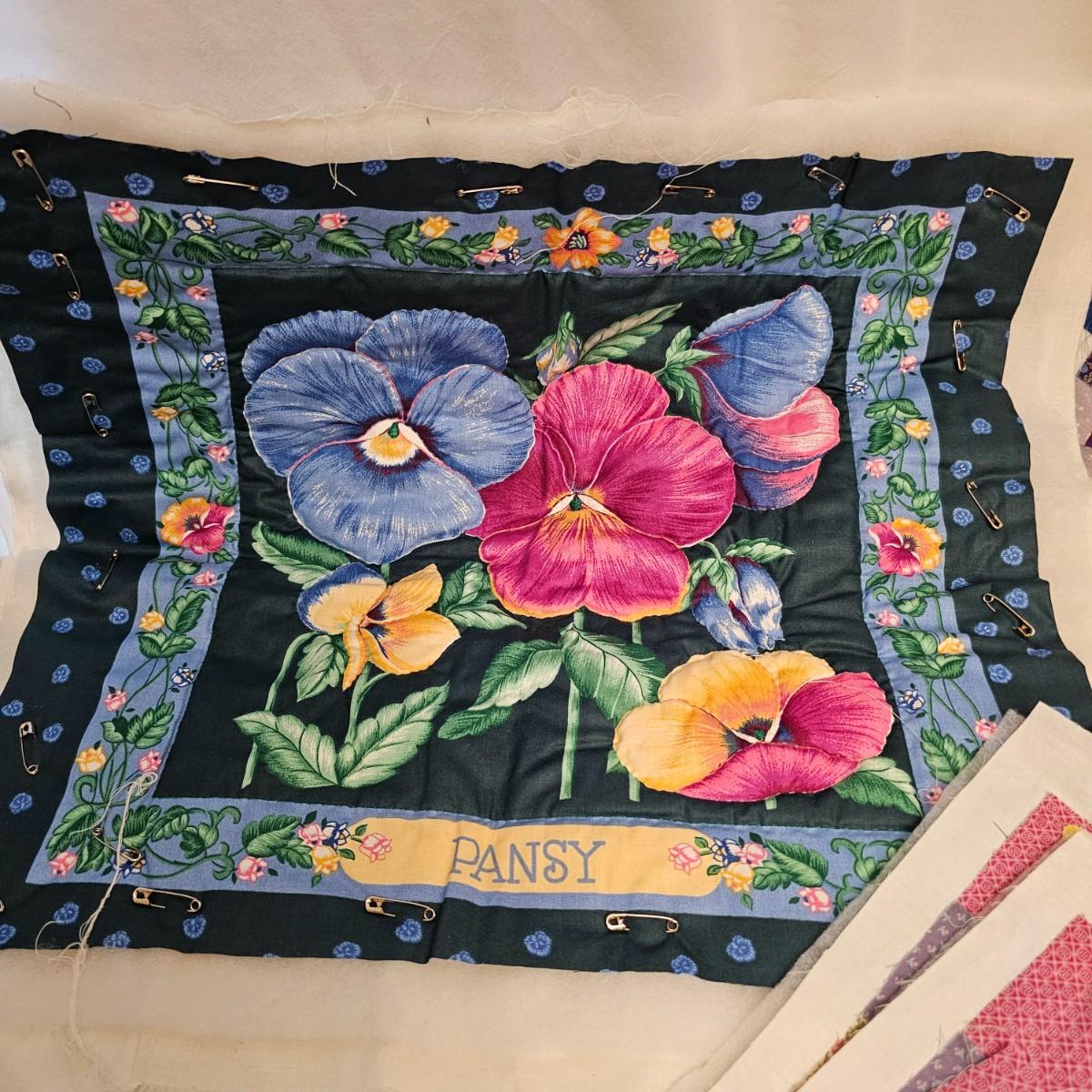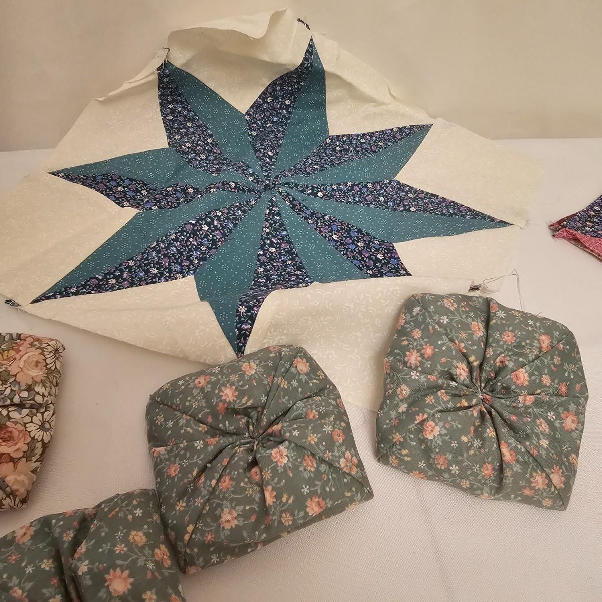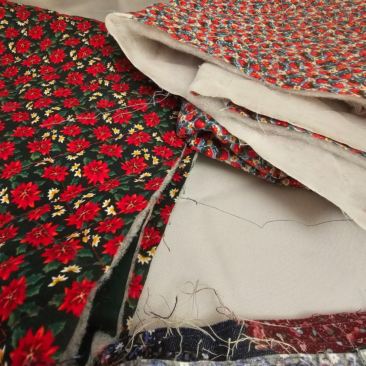Precut pieces, loose strips and projects in progress make up this fabric offering. Many different styles and colors. Many pieces already have batting and pre quilting done, just need finished. Lot includes two flat storage bins and some bags. See photos for details. Local pickup only.