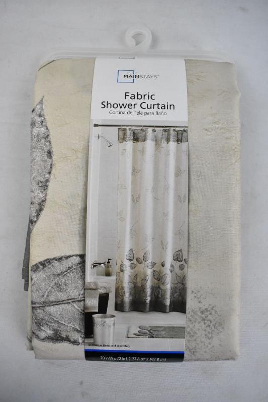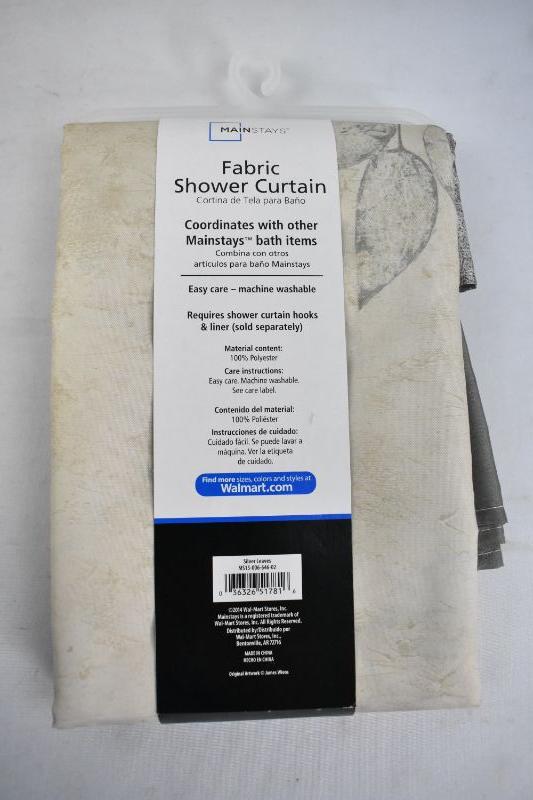 Fabric Shower Curtain 70" x 72", Silver Leaves - New