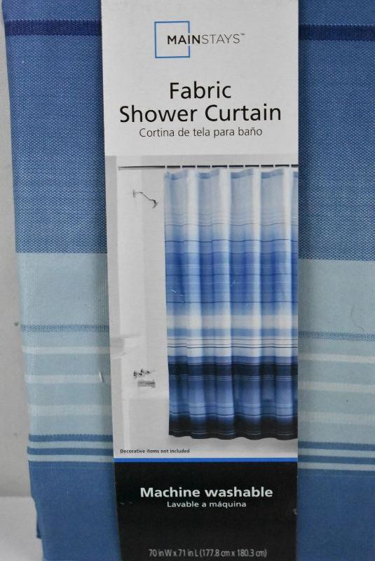 Fabric Shower Curtain by Mainstays, Blue Striped 70" x 71" - New