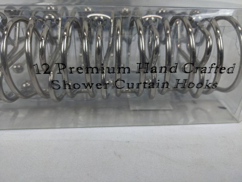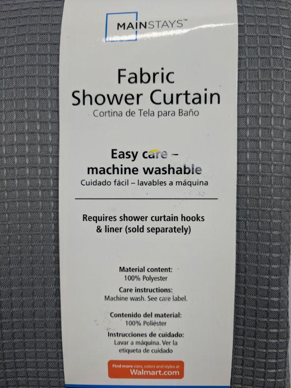 Mainstays Fabric Shower Curtain Gray Waffle Knit & 12 Premium Hand Crafted Shower Curtain Hooks, Stainless Steel - New