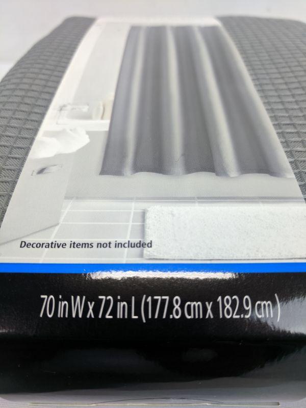 Fabric Shower Curtain Gray Waffle Knit & 12 Premium Shower Curtain Hooks - New