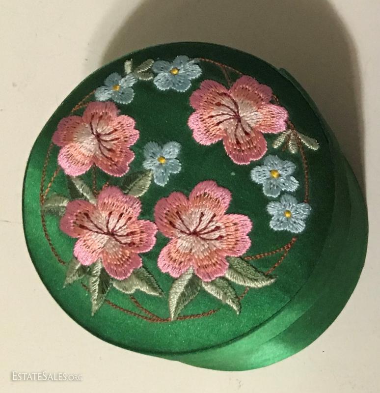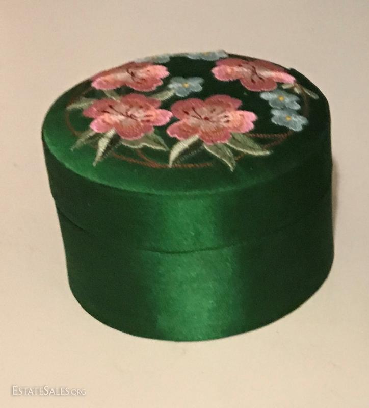 green fabric treasure box is in excellent condition.