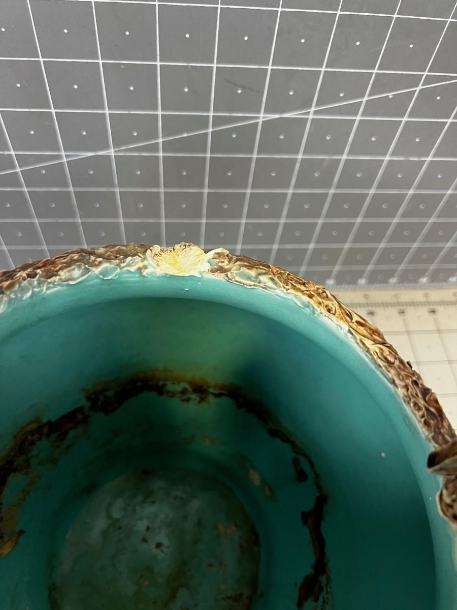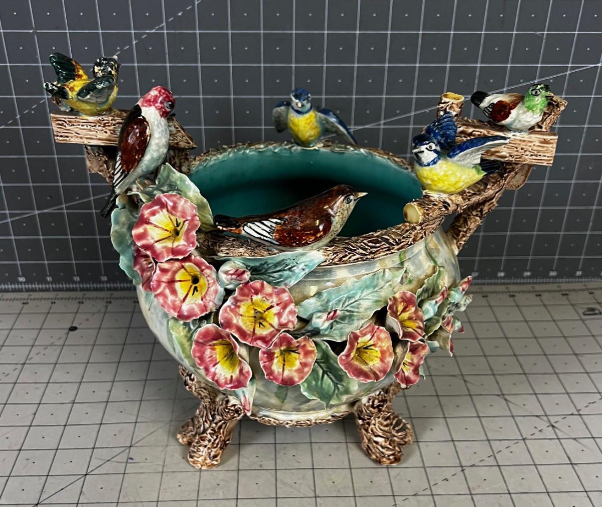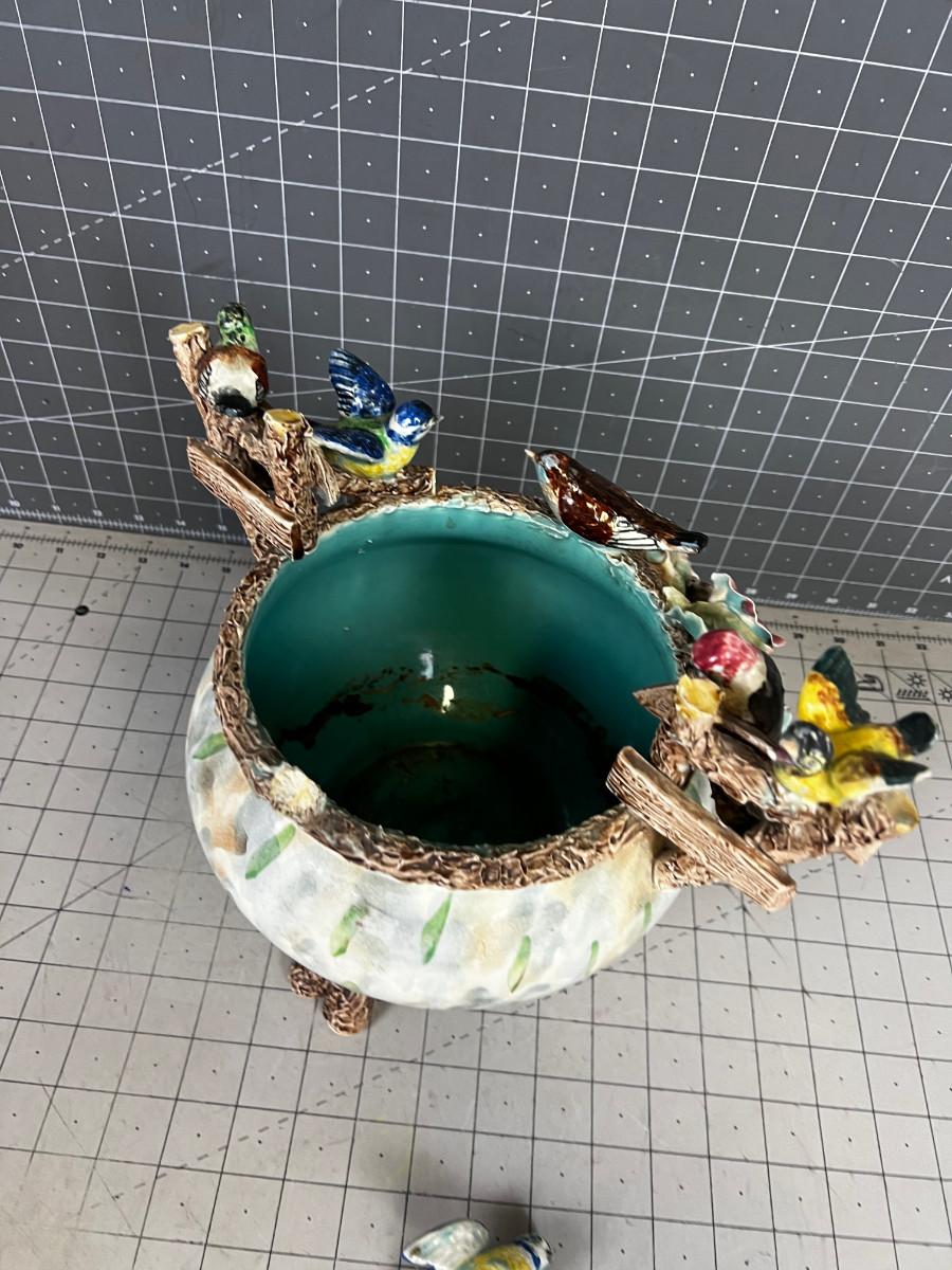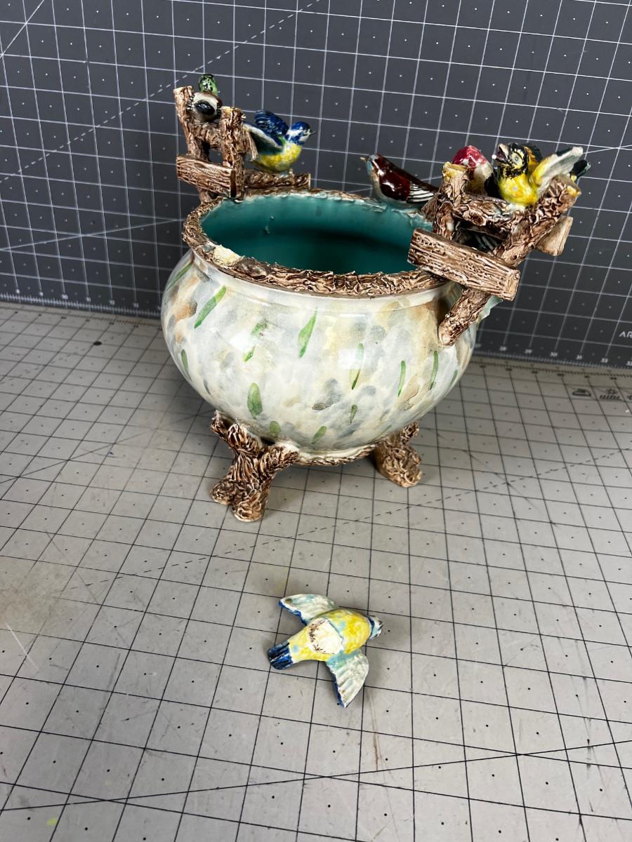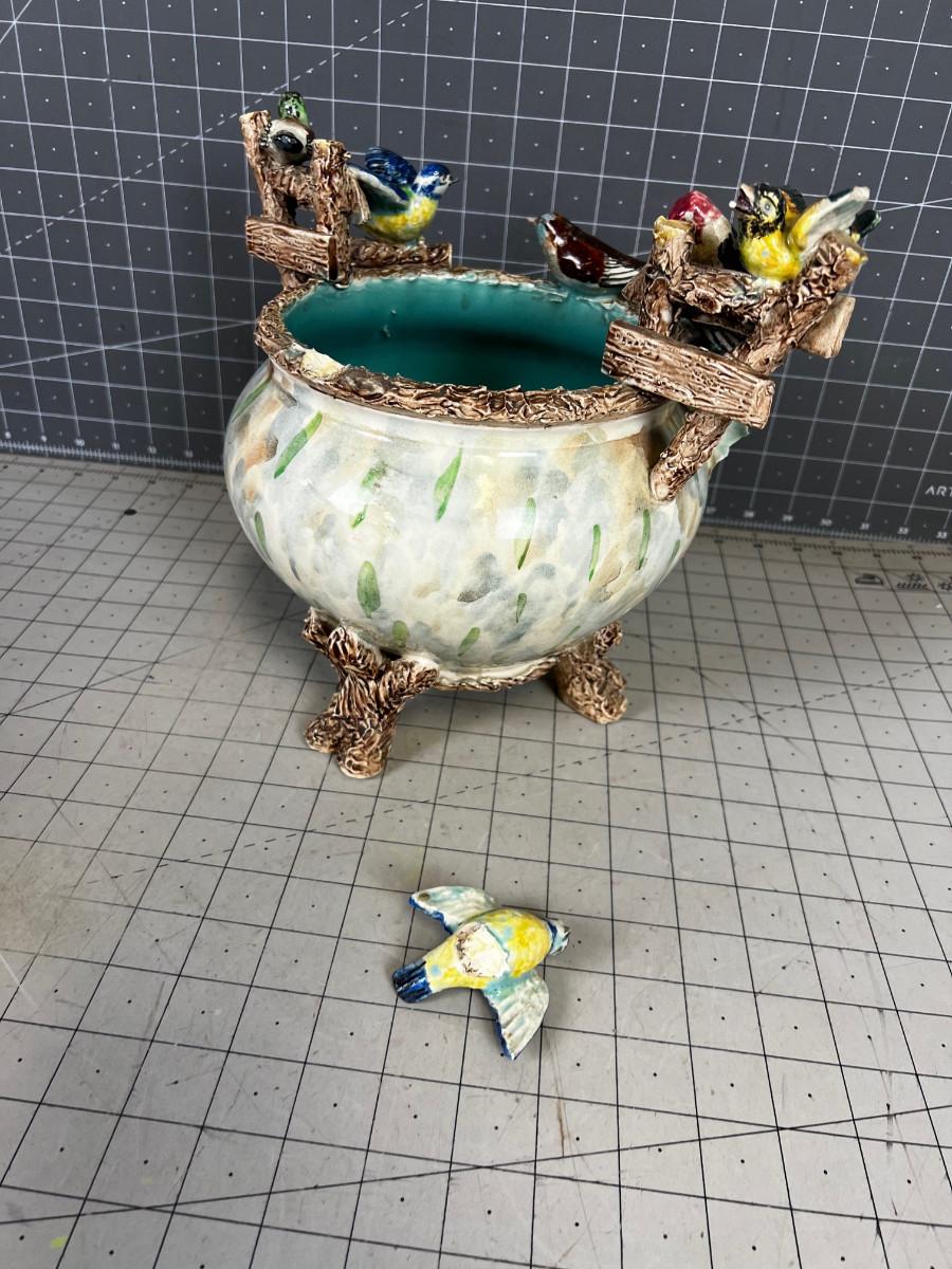 Has a Bird Broken off but is there to be reattached. Neat old Piece. Pretty. I Really like it!!!