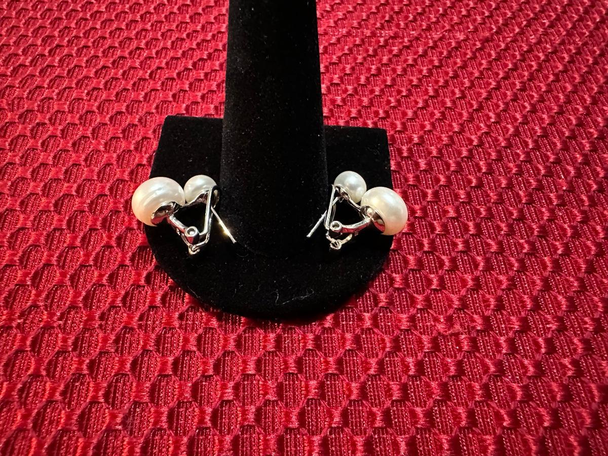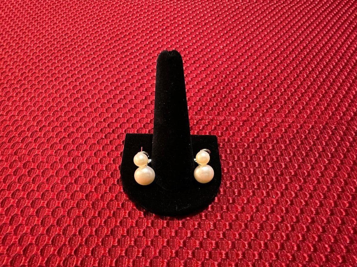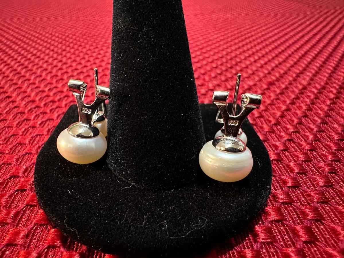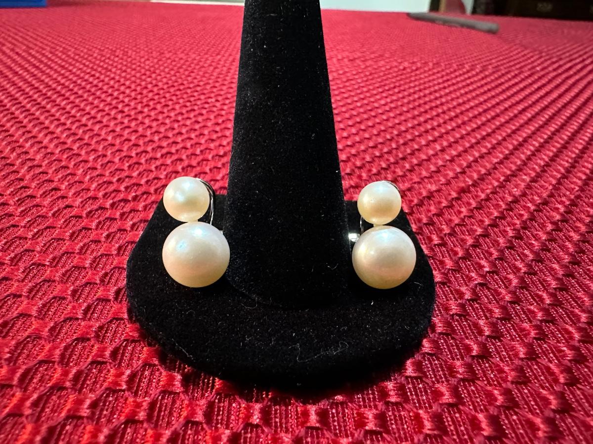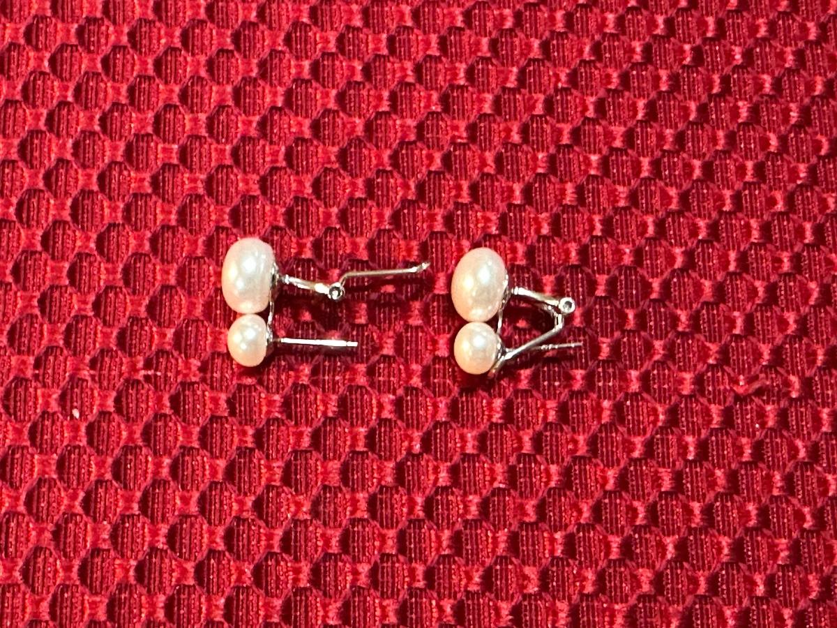 Antique hair comb is in good condition. Pearl earrings are on silver studs.