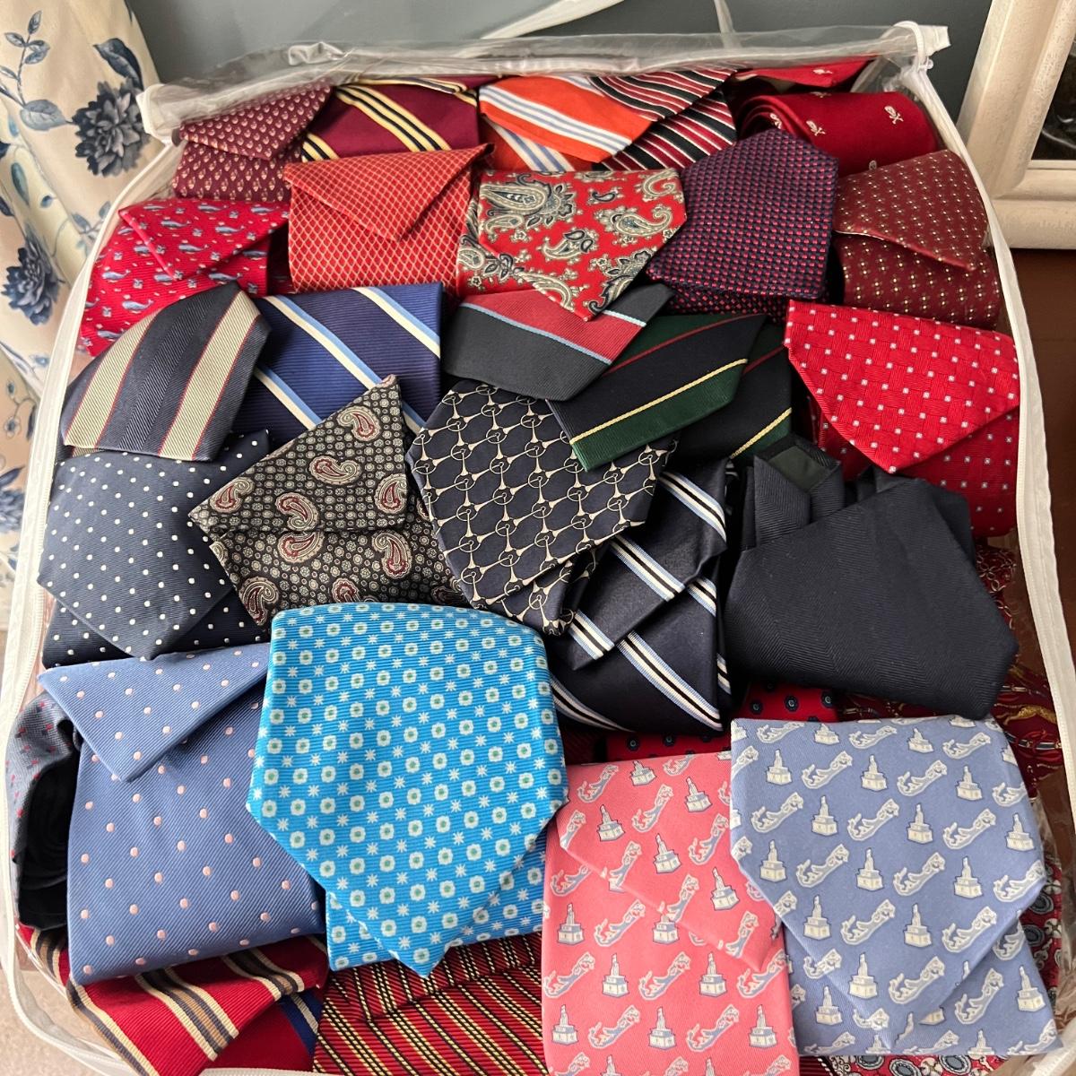 Only some were photographed. Too many to take pics of every one! All the ties in this estate were well taken care of, properly stored, excellent condition unless otherwise photographed.