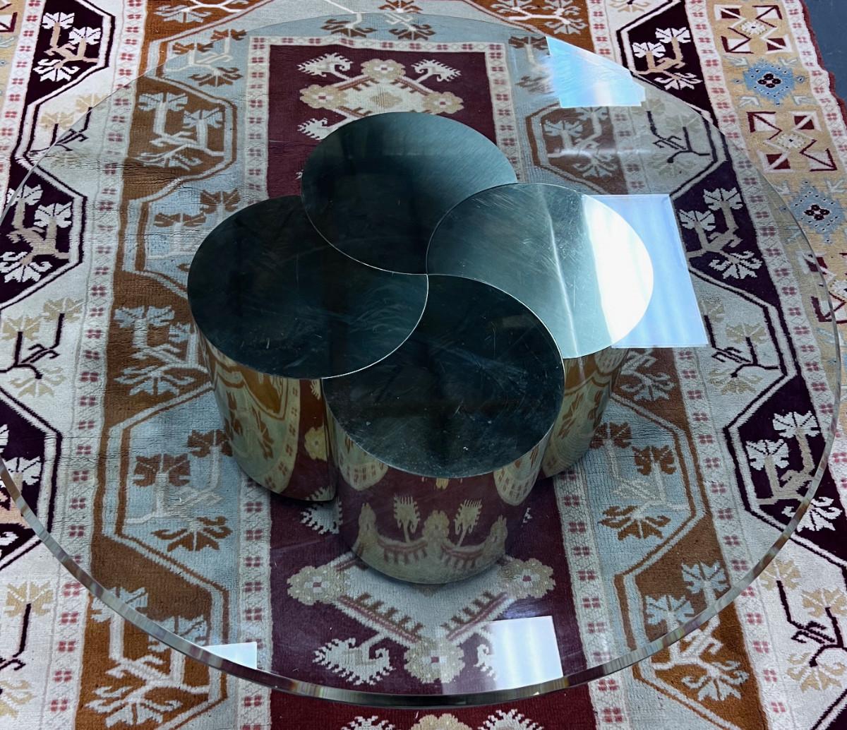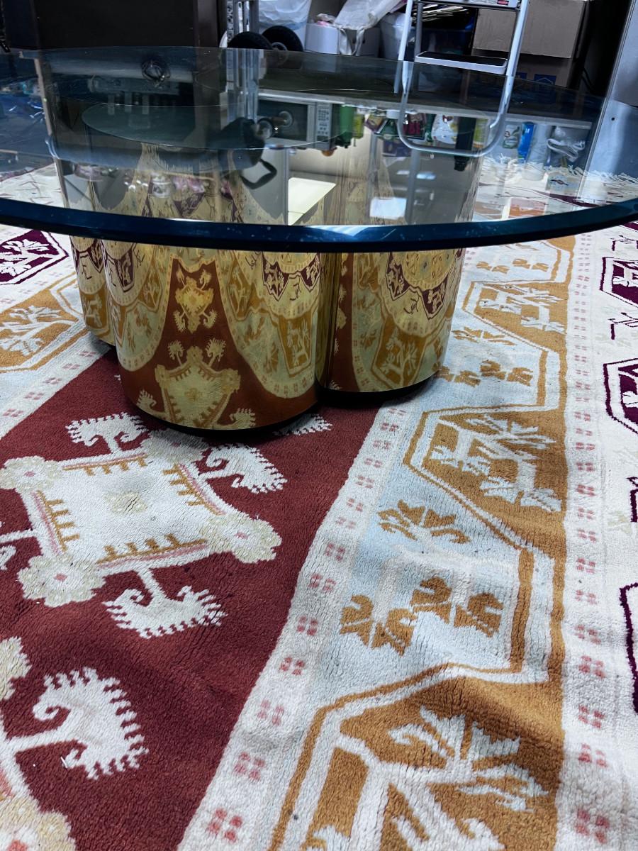 Fabulous Coffee Table! Mid Century Modern Hollywood Regency  Brass  with Heavy Beveled Edge  43" Glass
