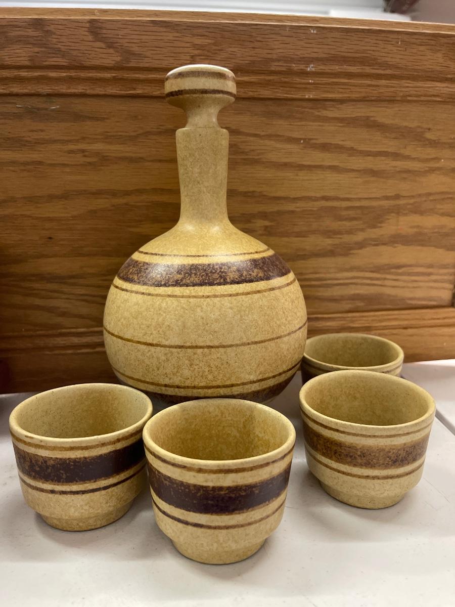 Fabulous Decanter Set Mid Century Modern Stoneware Pottery with 4 cups