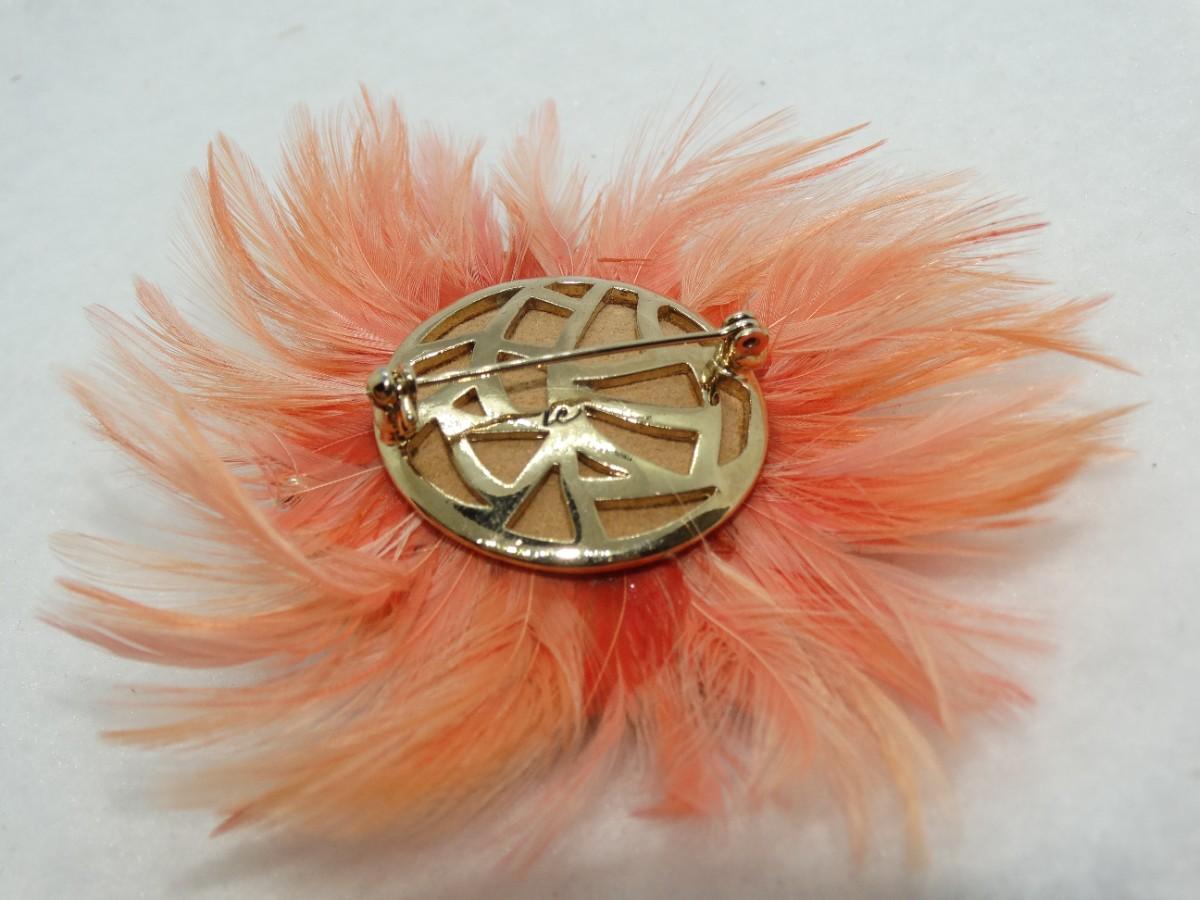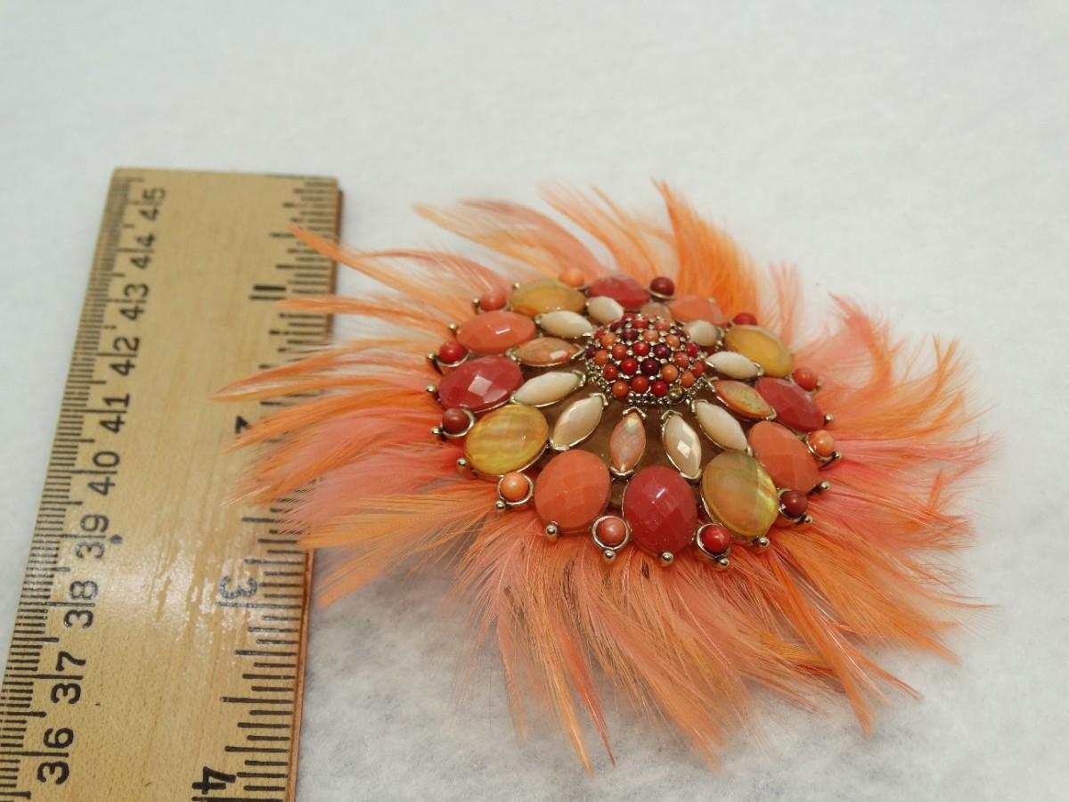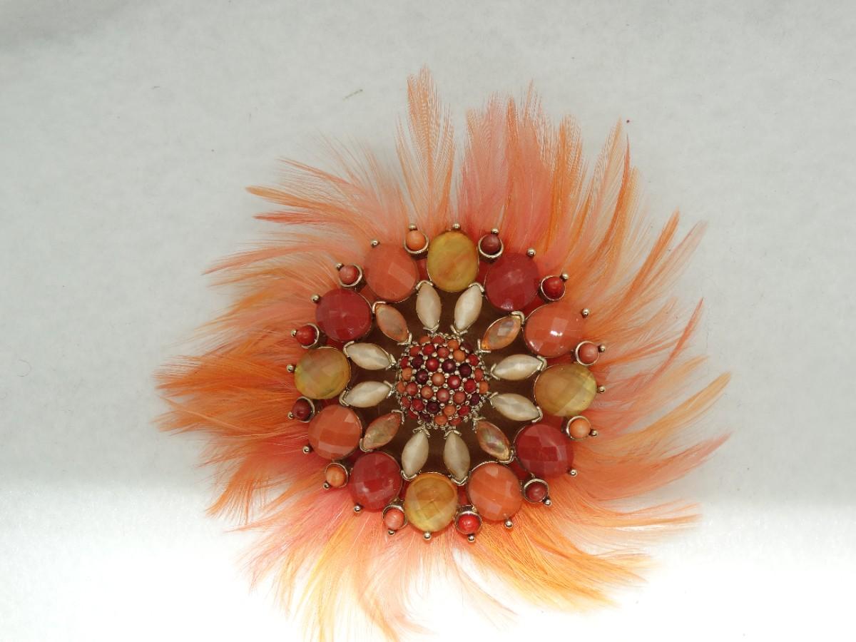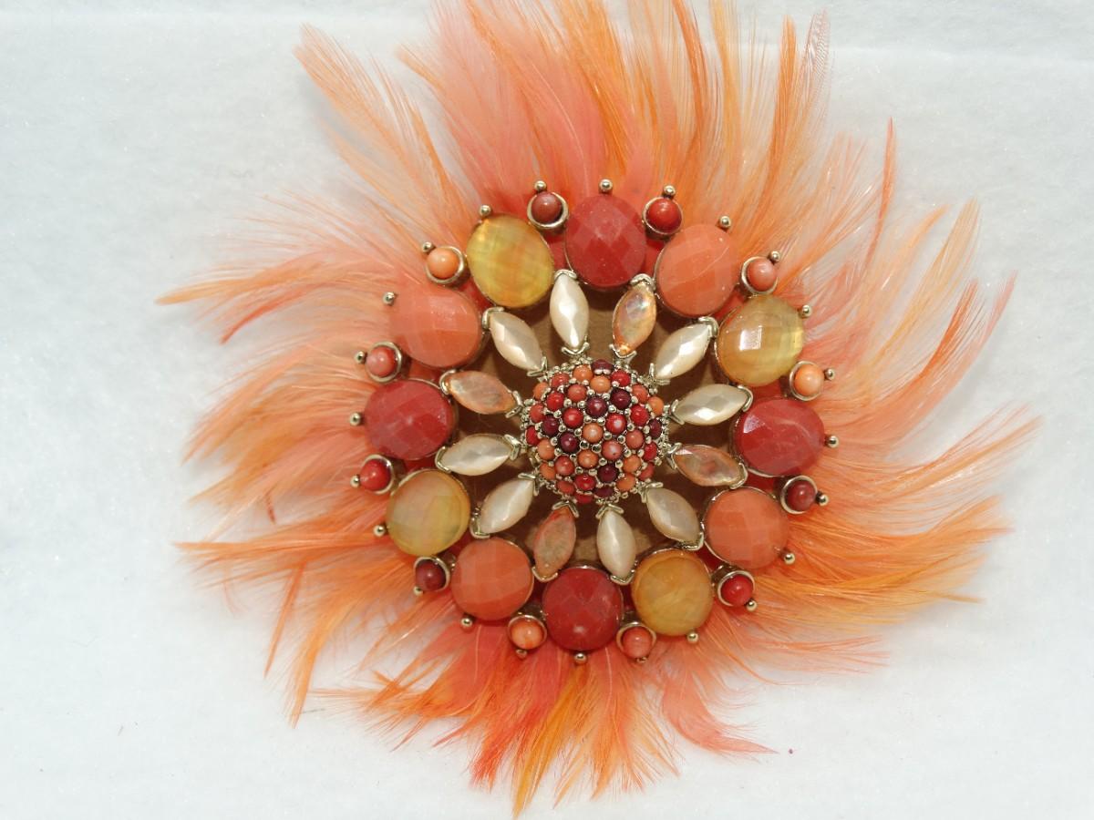 Fabulous Feathers & Baubles Orange Brooch