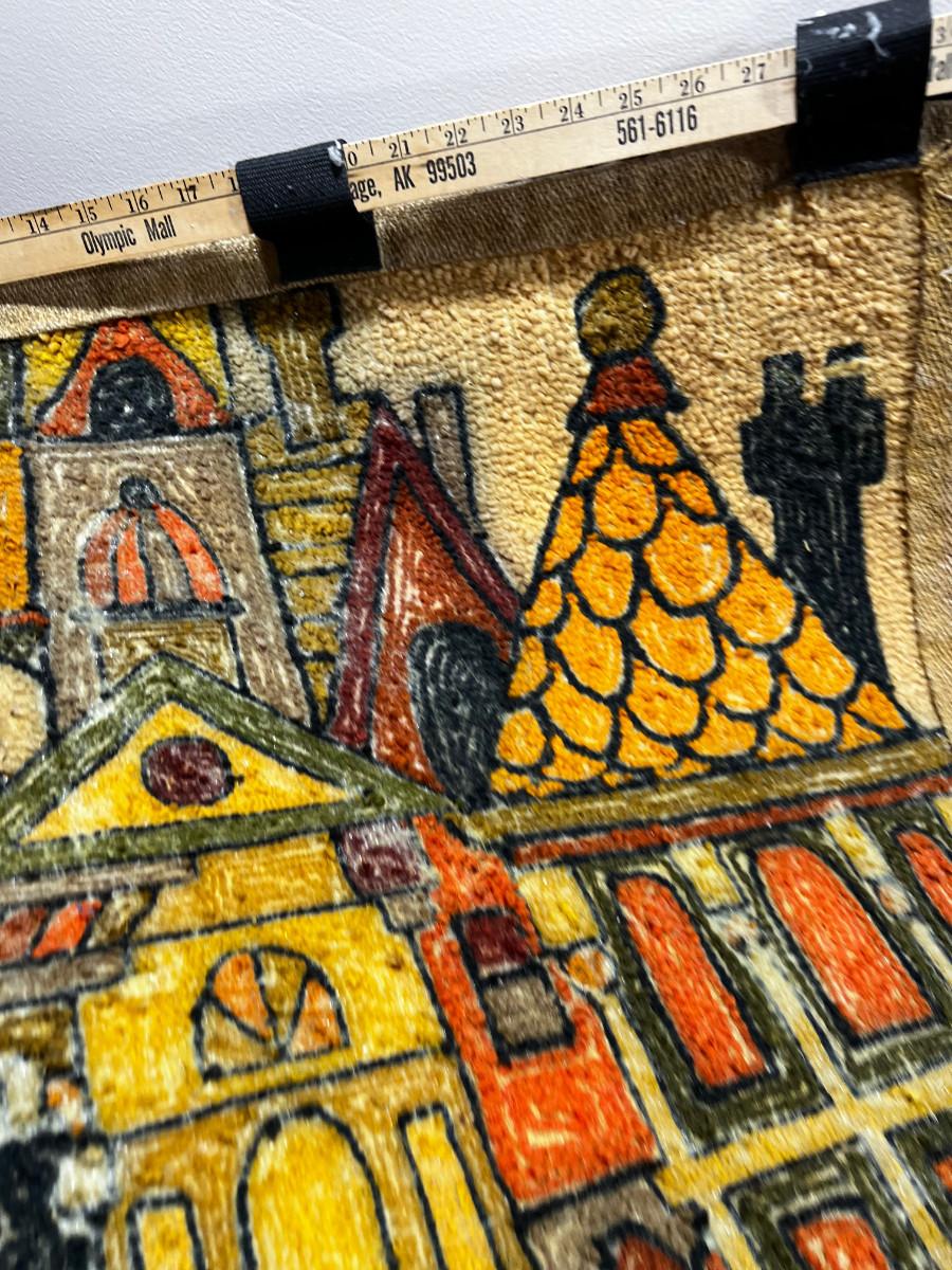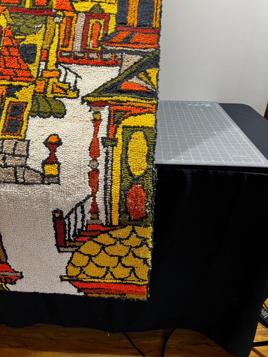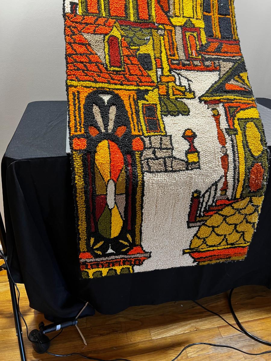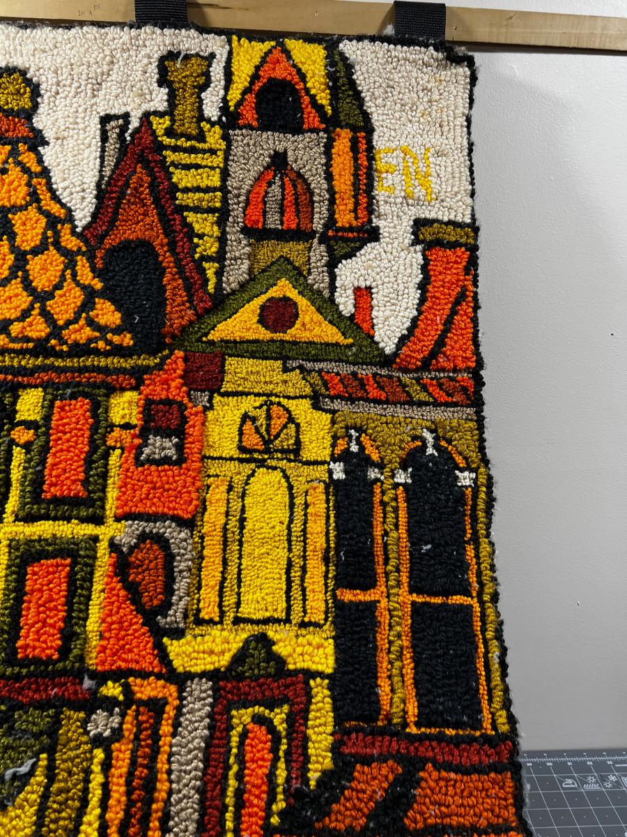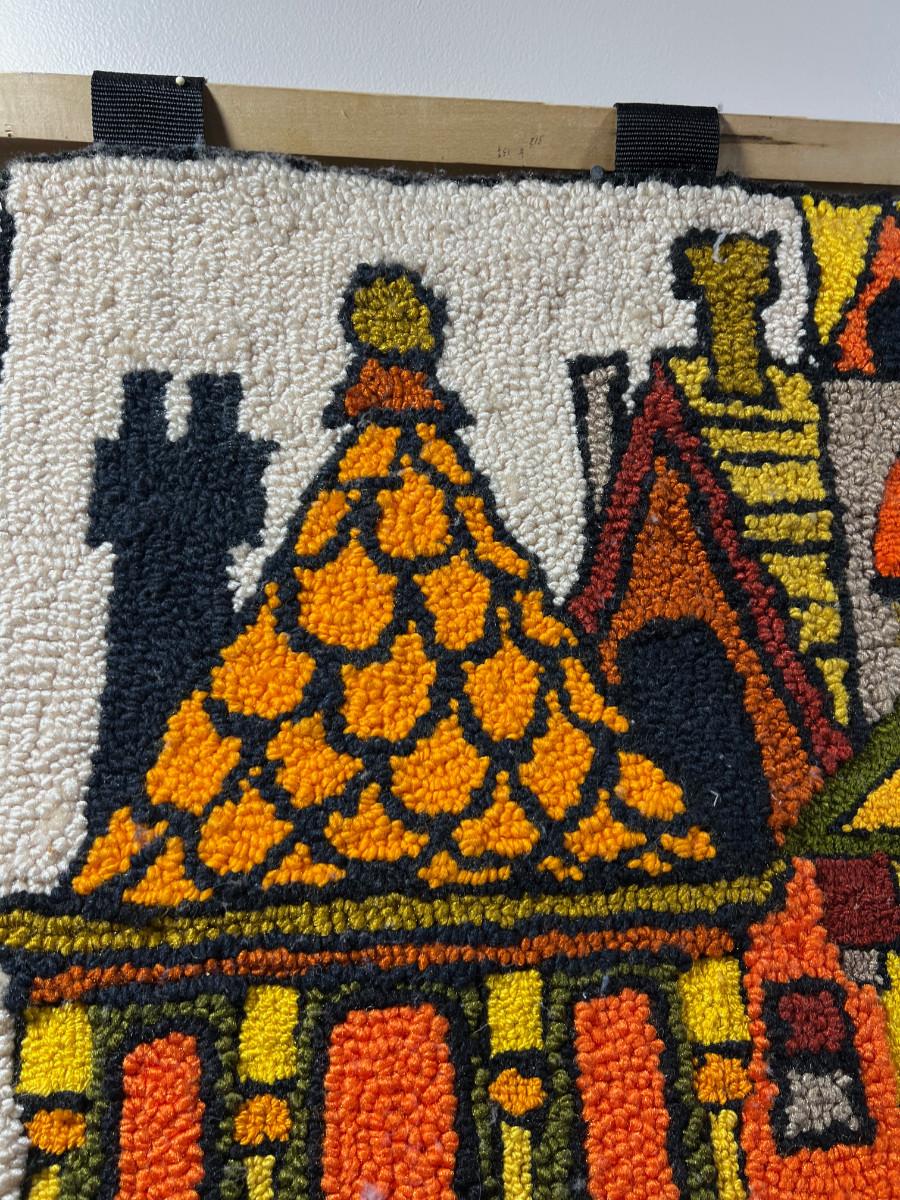 FABULOUS Hook Rug Wall Hanging, Orange and Green,