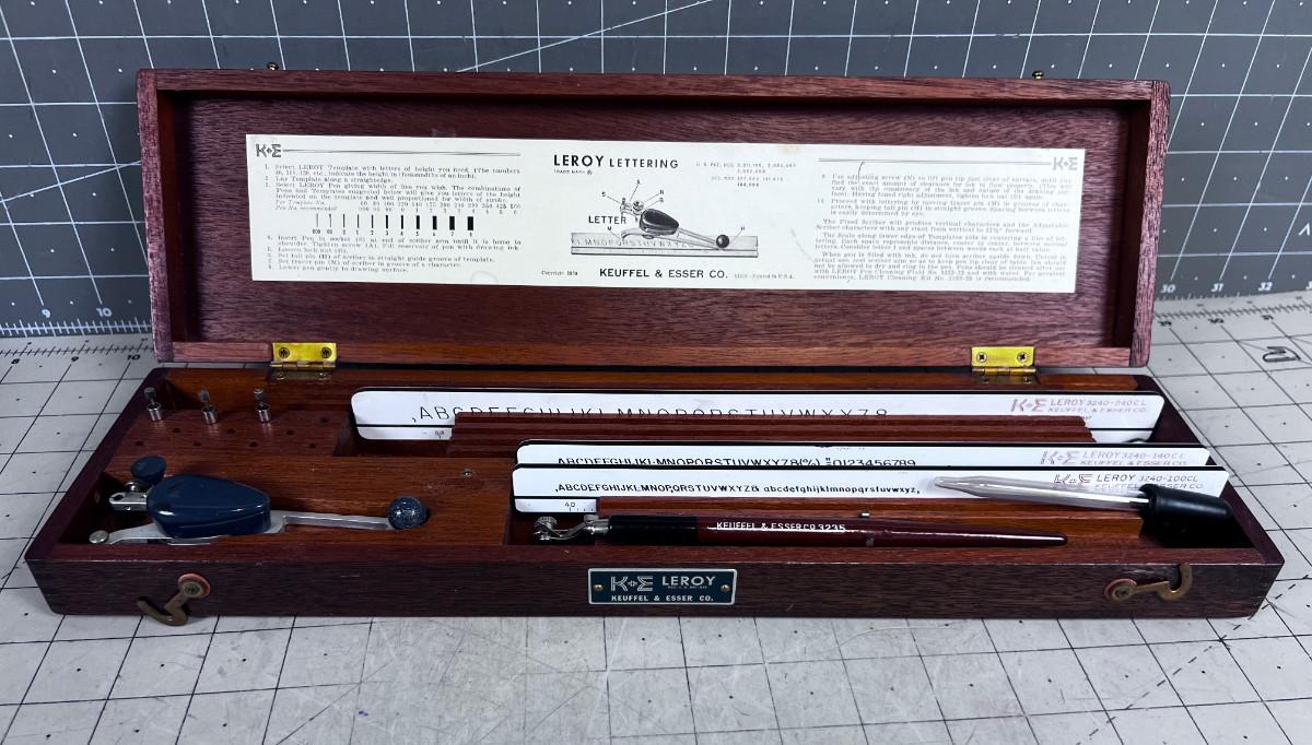 Fabulous K & E LeRoy Lettering Kit, in Walnut Box