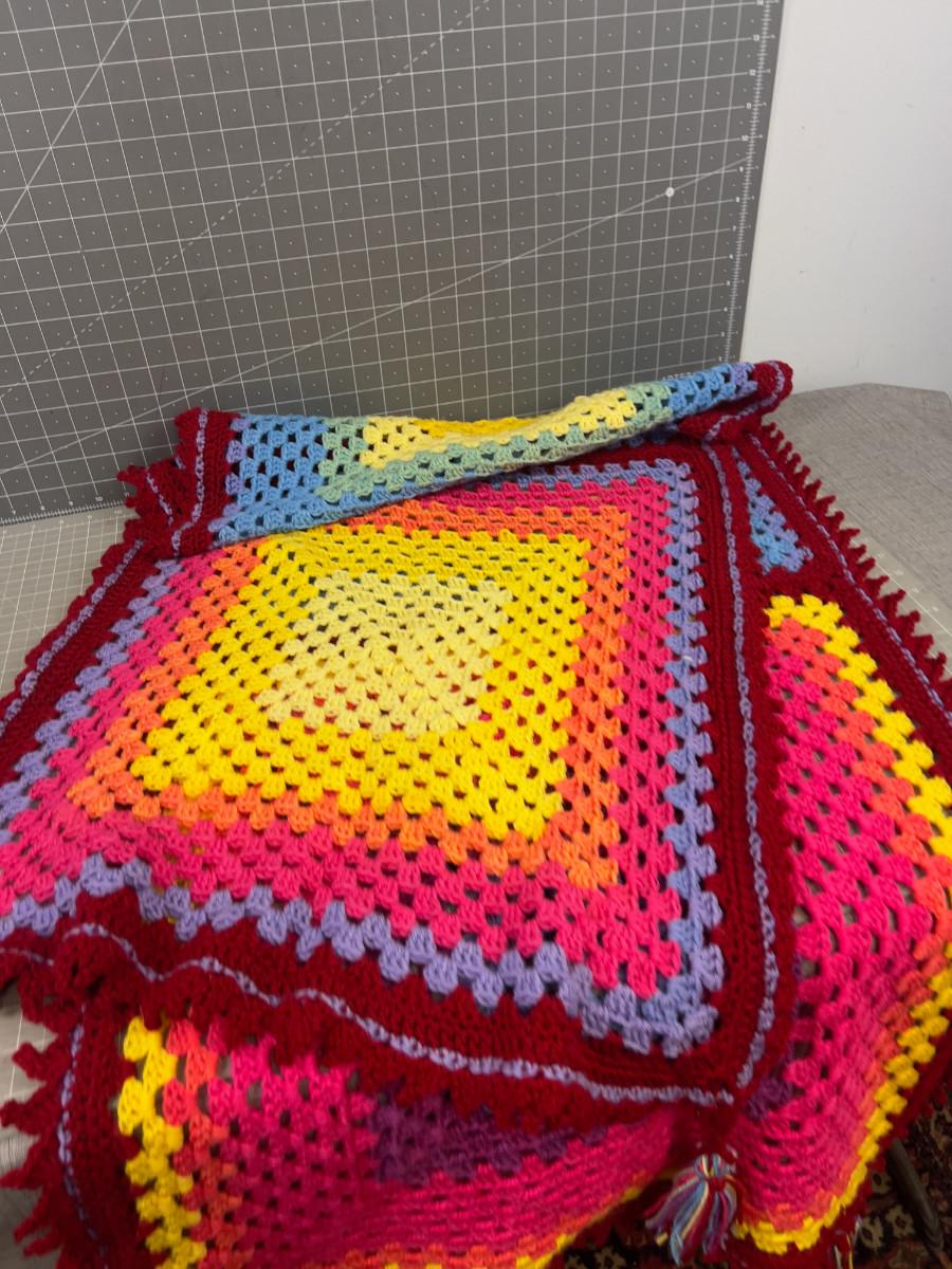 FABULOUS NICE THROW, HAND Crocheted Colorful, Made a few years ago in the USA