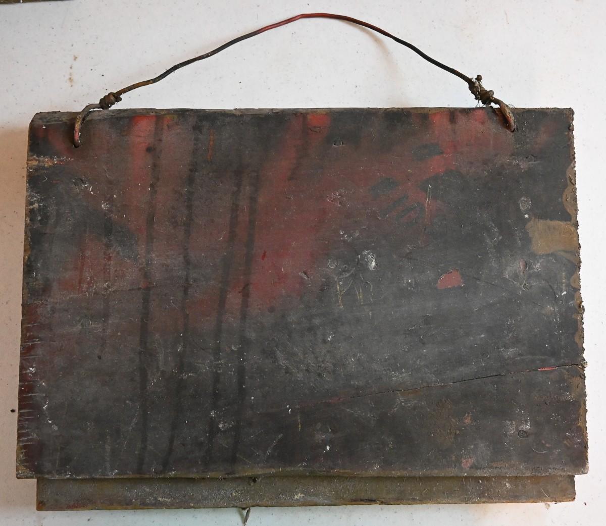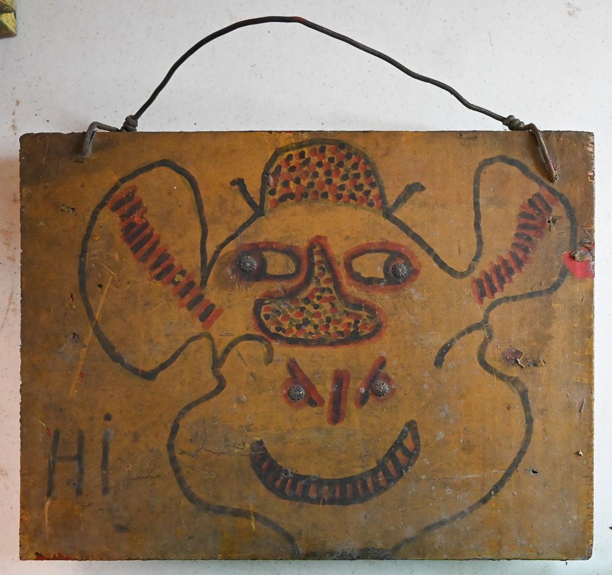 A face painted on boards by Michigan artist Albert “‹“Kid” Mertz. Mixed media. Approx. 12.5" x 16.5" x 2". Please note, listed dimensions does not include the wire hanger.
