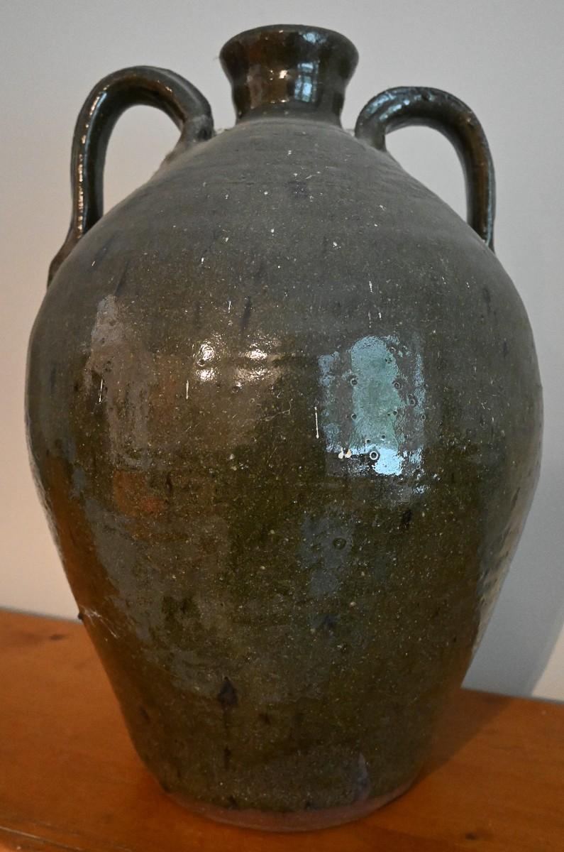 A piece of pottery by an unknown artist. Ceramic, mixed media. Approx. 16" x 11" x 11".
