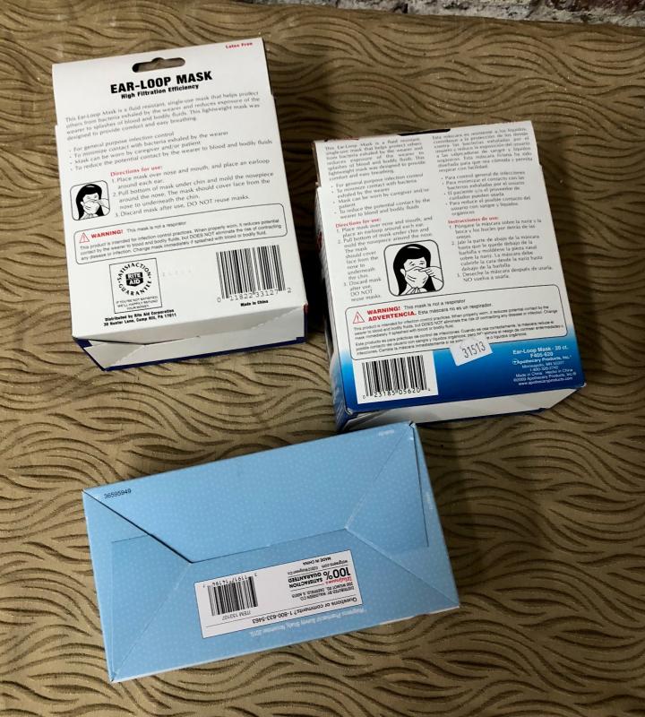 New condition..three unopened boxes of Ear-Loop style Masks...High Filtration Efficiency