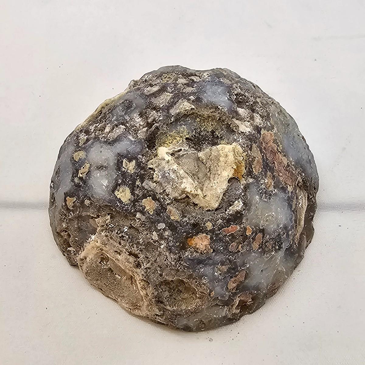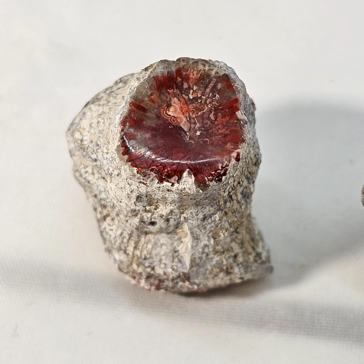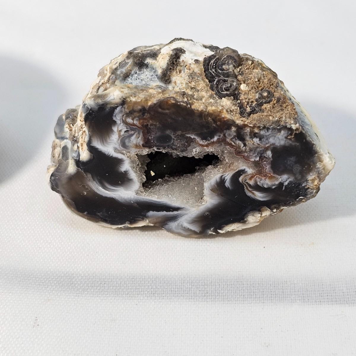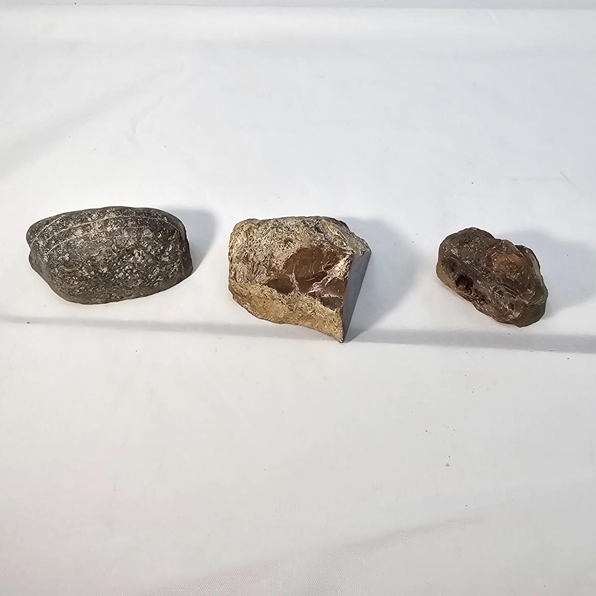 All of these pieces have been cut and polished on one side only, just a face look at the beauty within. Hard shell matrix on the outside, these appear to be agates and nodules. Some display areas are only an inch or so, to take advantage of the natural beauty of the stone. The largest piece is 5" x 3" x 4"H, smallest is about 1" all around. Stands and bin included. See photos for details. Shipping available. Please note that any price tag seen on an item was not put there by Sterling Transitions and does not reflect the current value of the item. All sales are final. No returns or refunds. Please bid accordingly.