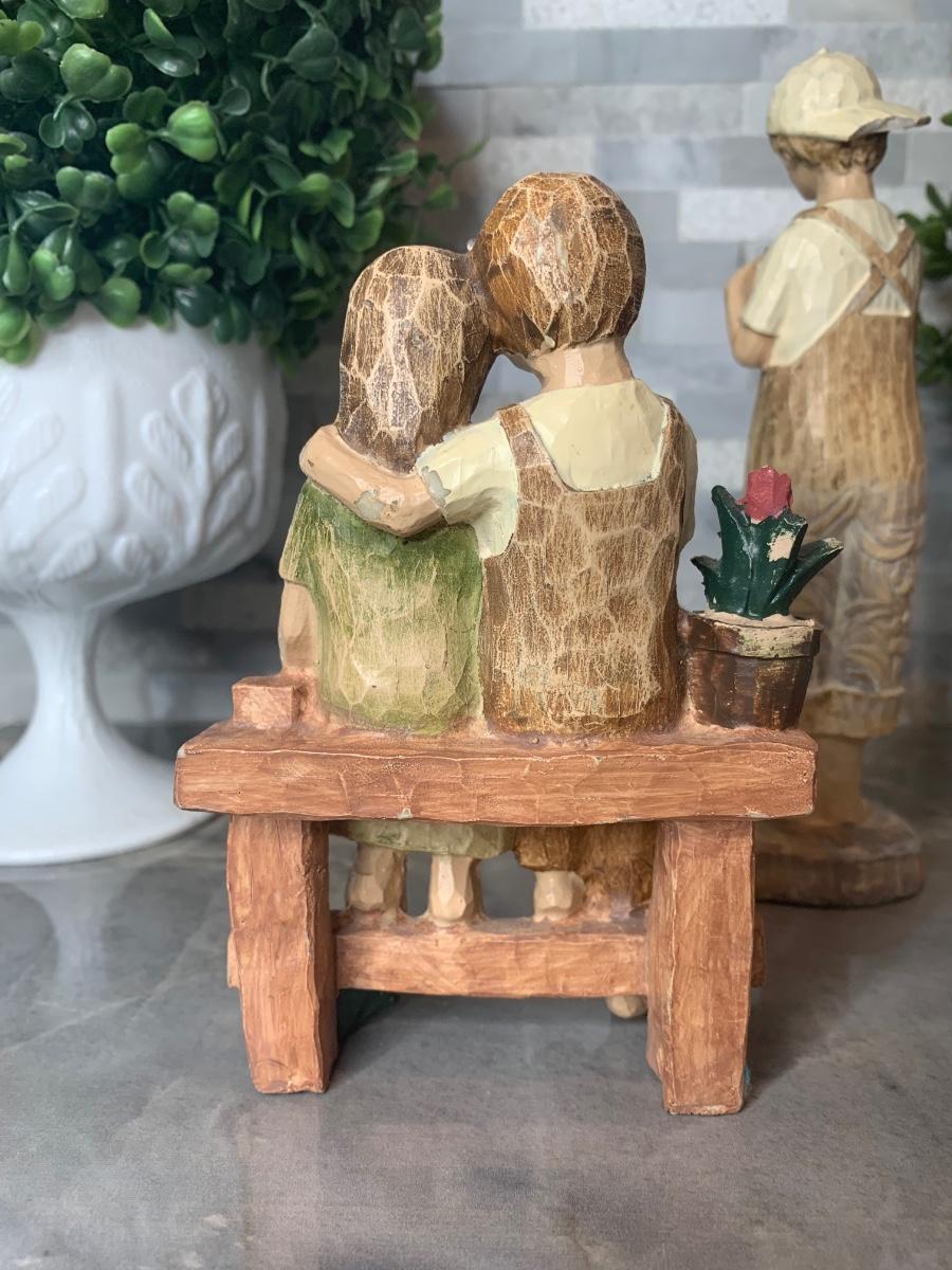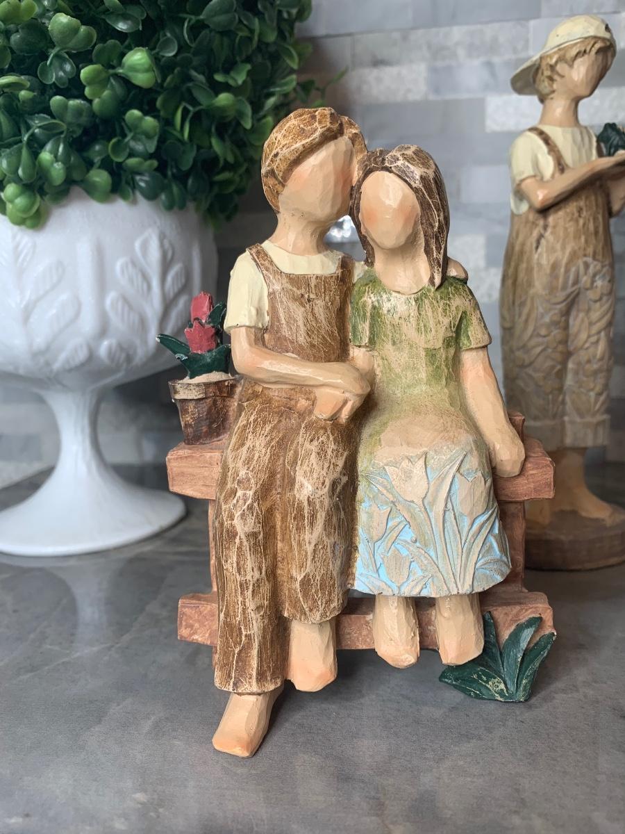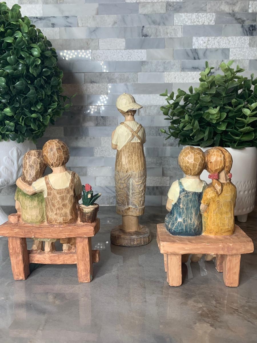 I have a set of two Boy and Girl on bench, both are about 5 3/4” H and 3.5” W.