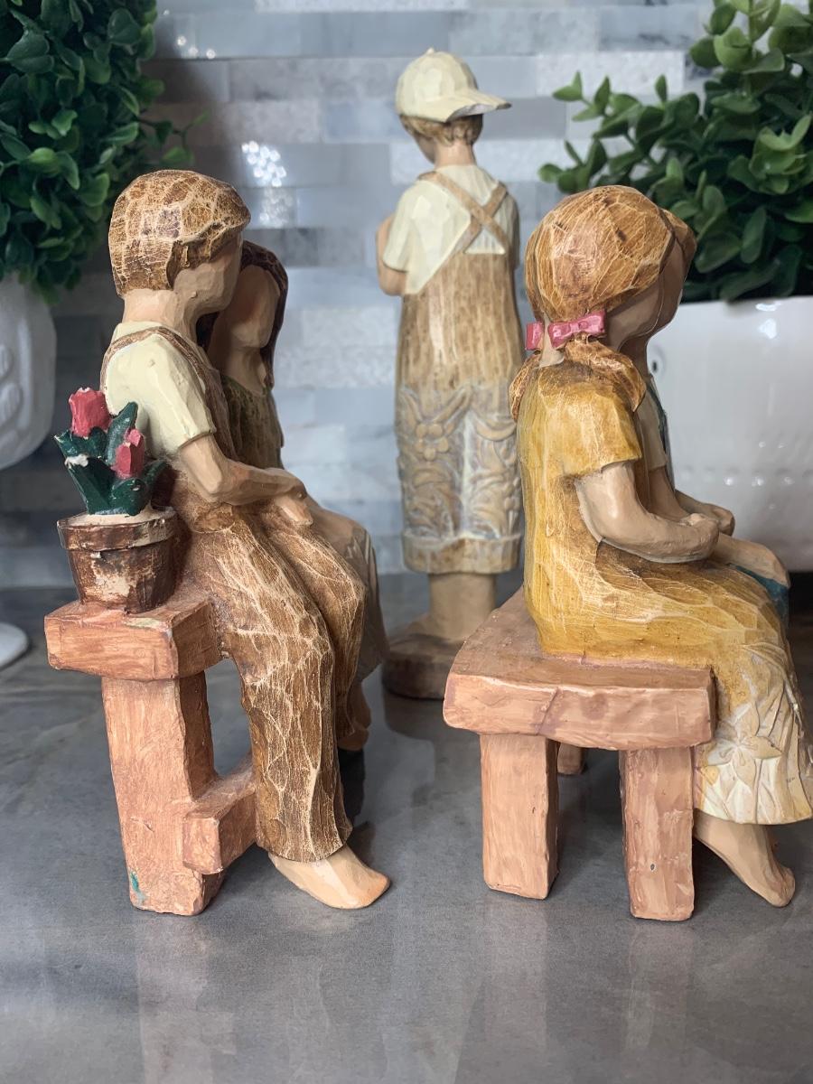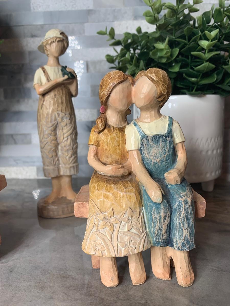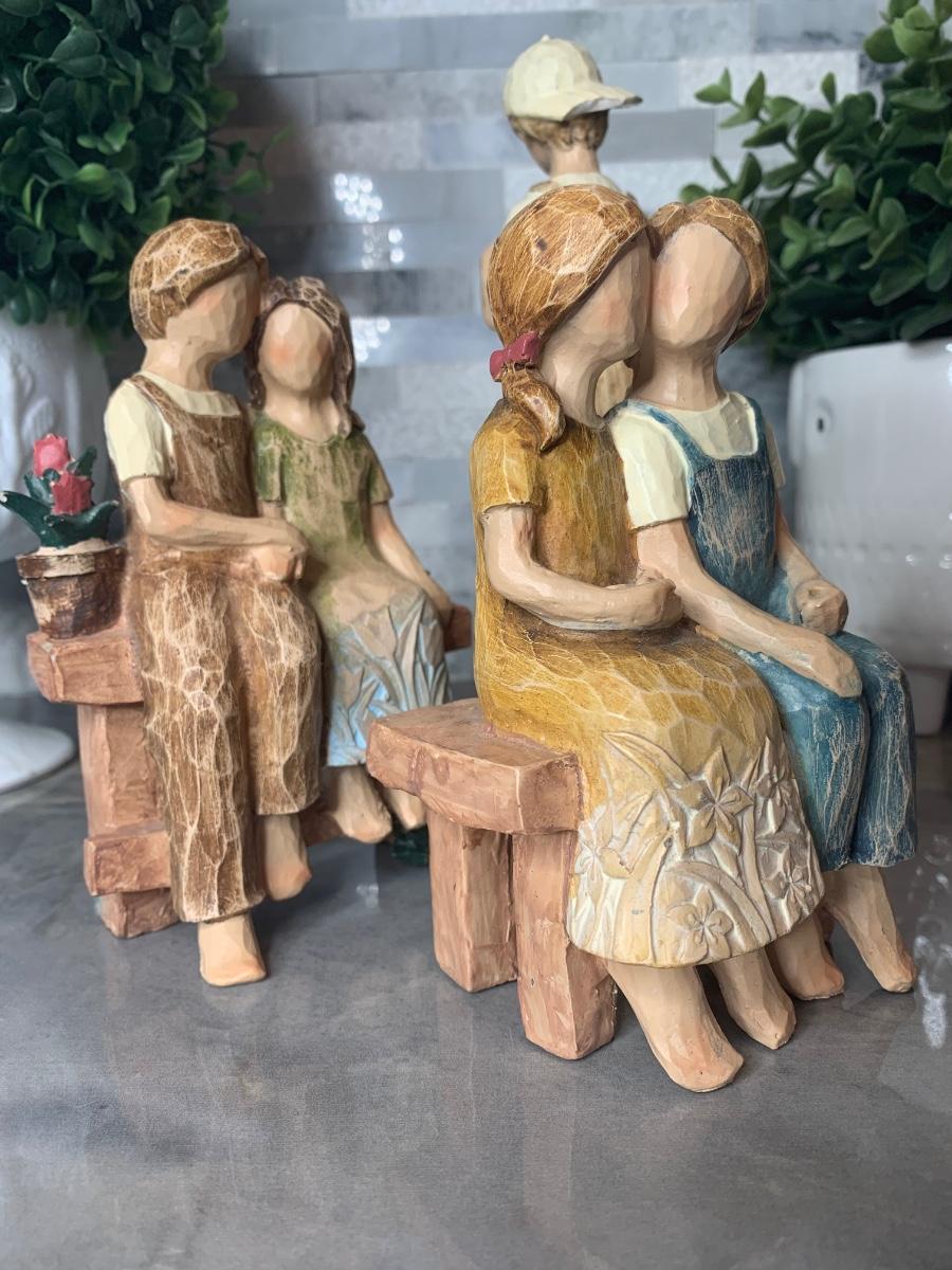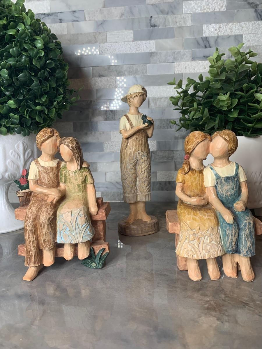I have a set of two Boy and Girl on bench, both are about 5 3/4” H and 3.5” W.