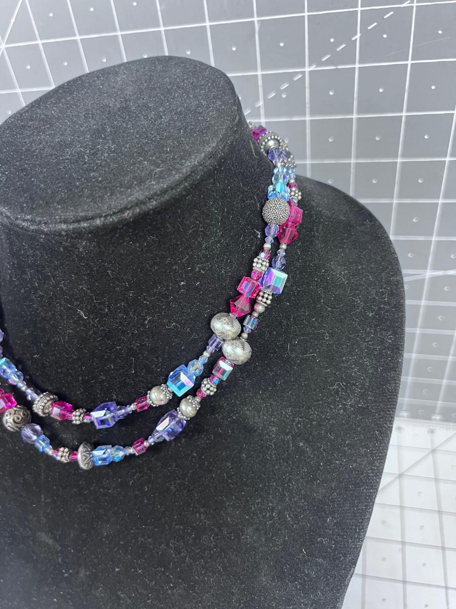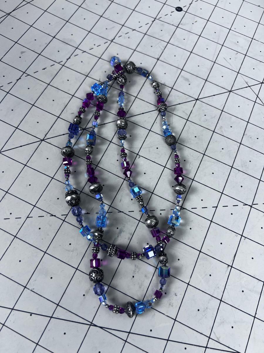 Measures 34" Lovely. Excellent for February; Red/purple/blue hues.