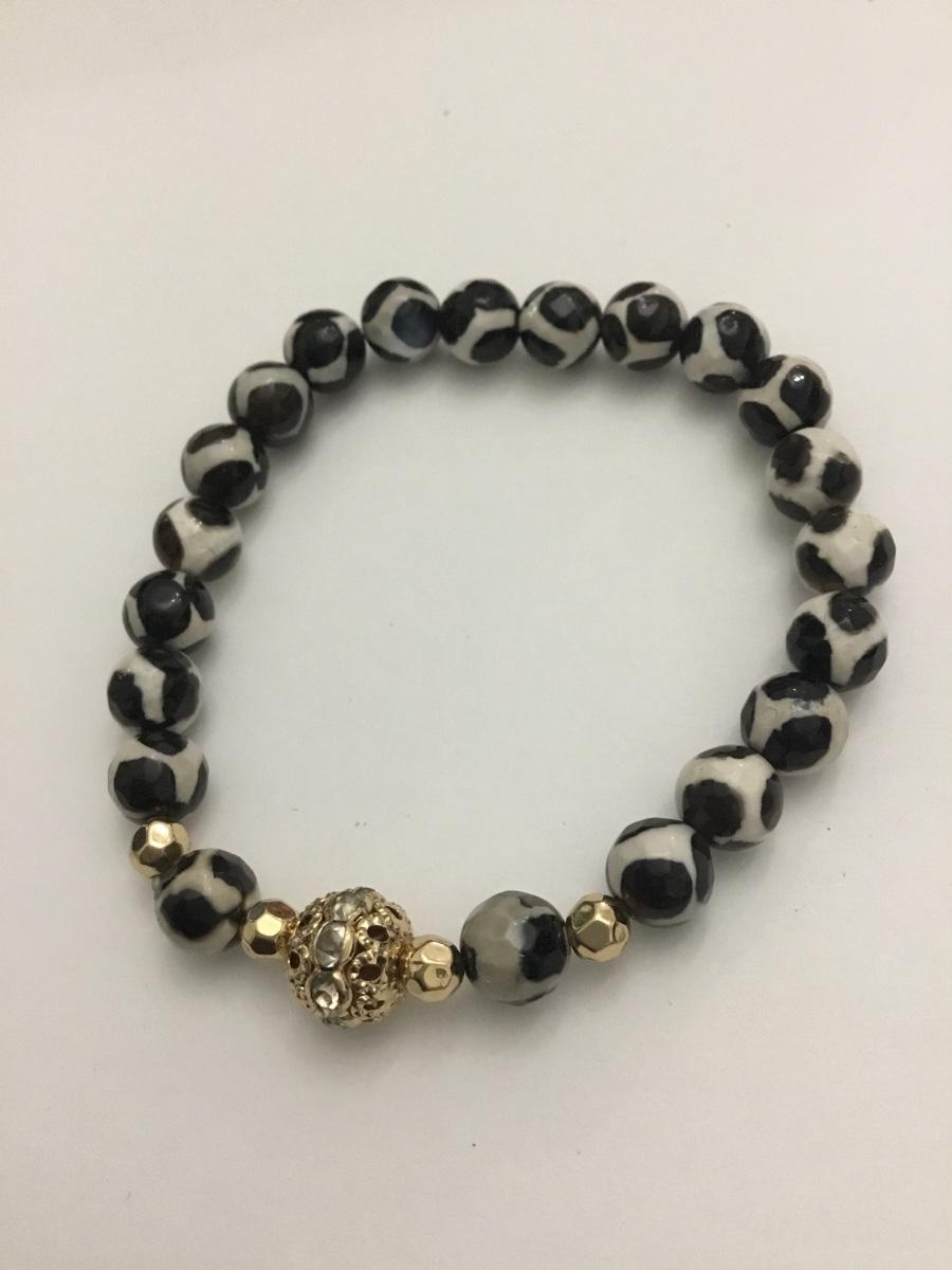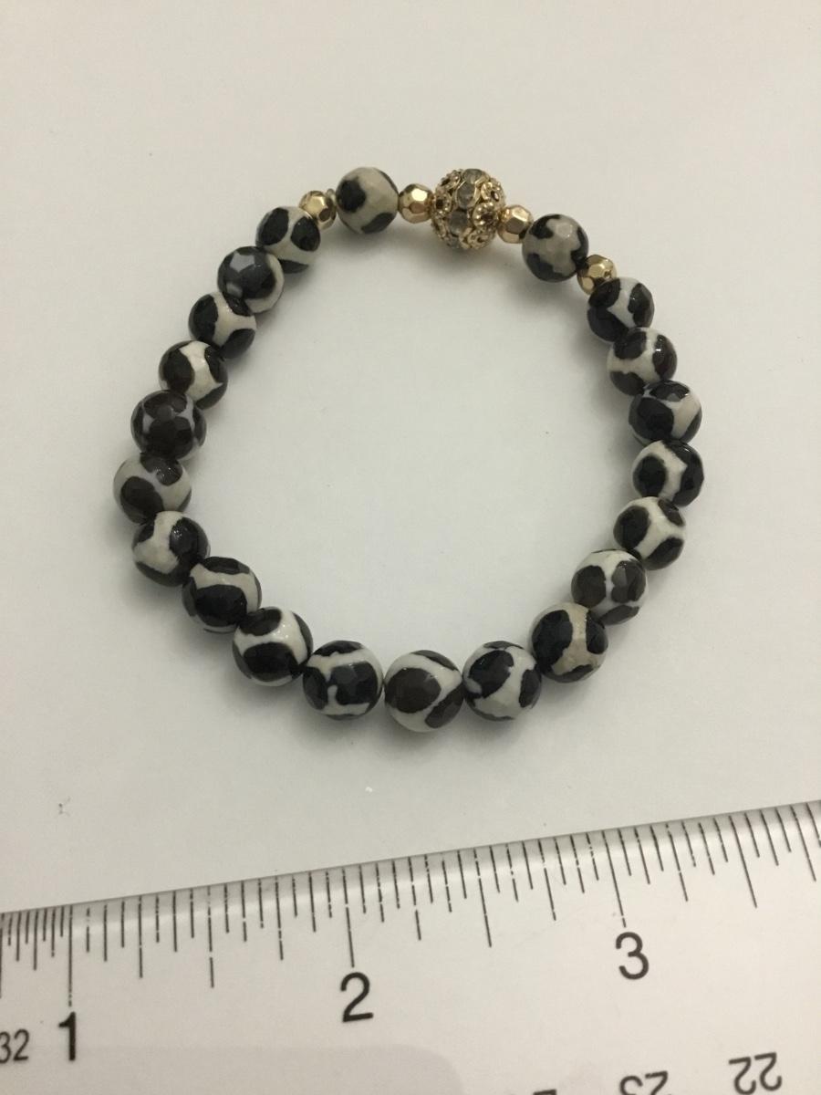 Faceted, black and white stone bead stretch bracelet