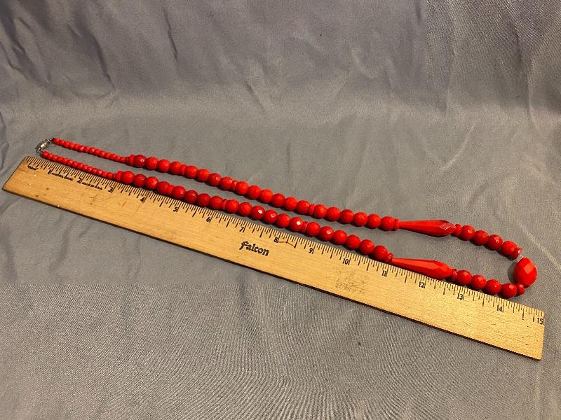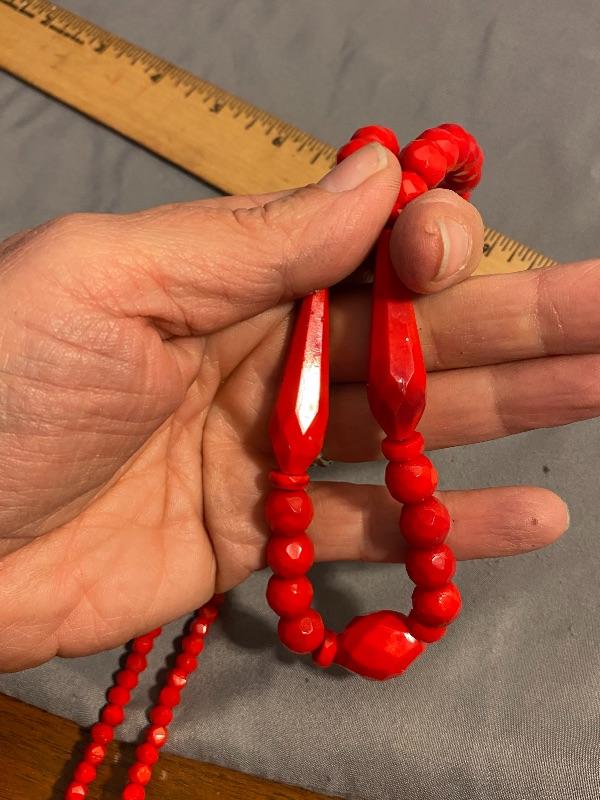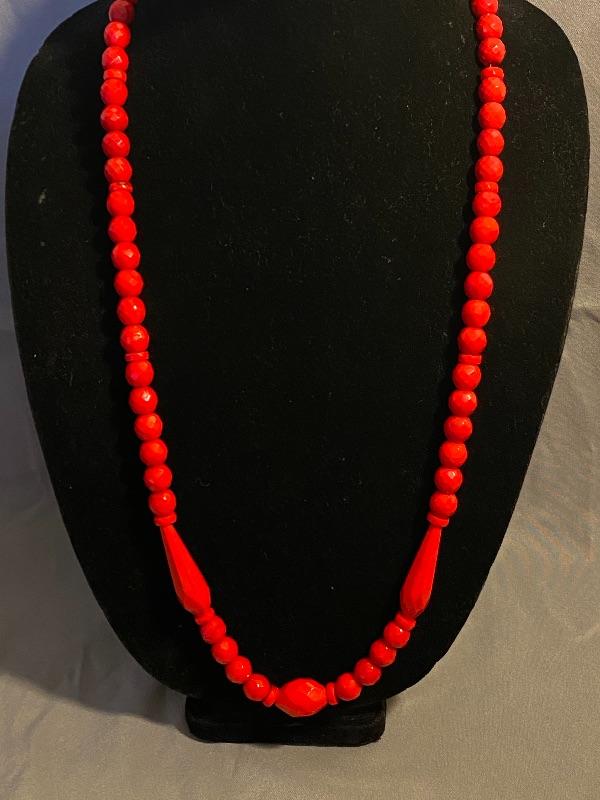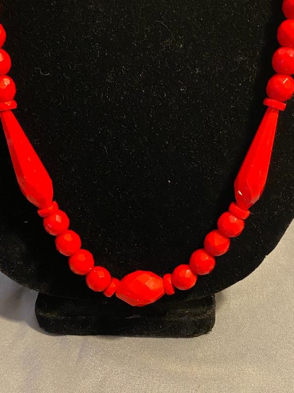 Faceted Bright Red Glass Bead Necklace YD#013-1120-00044