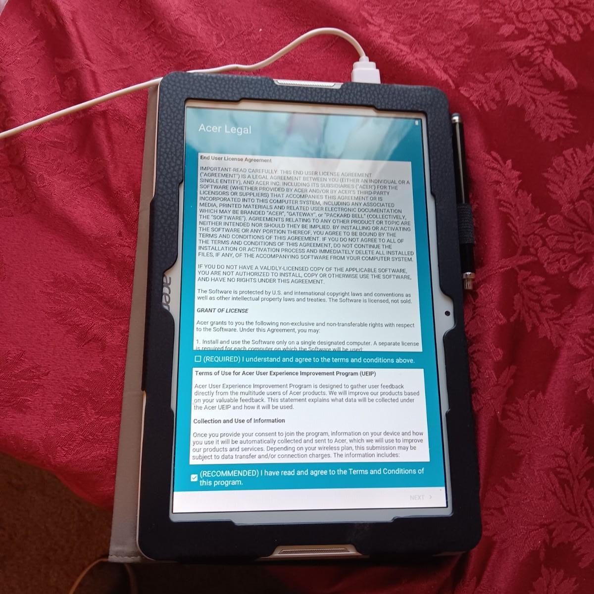 FACTORY RESET 10" ACER TABLET WITH CASE AND CHARGER
