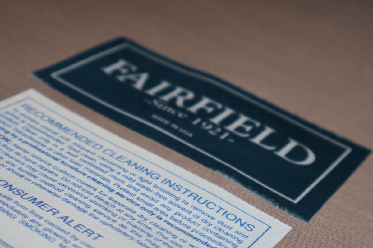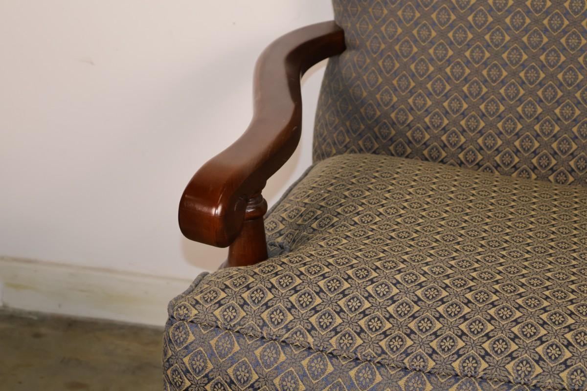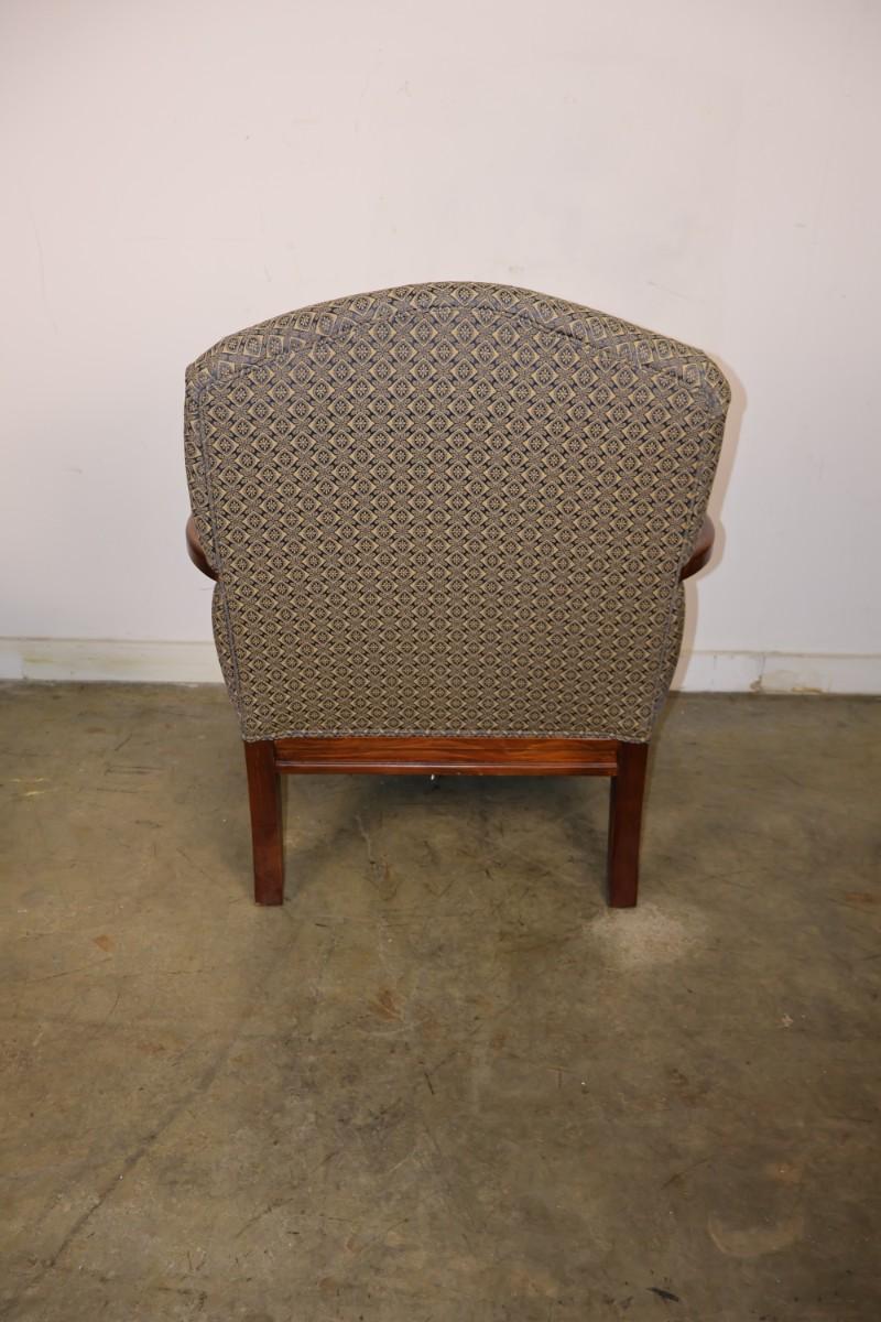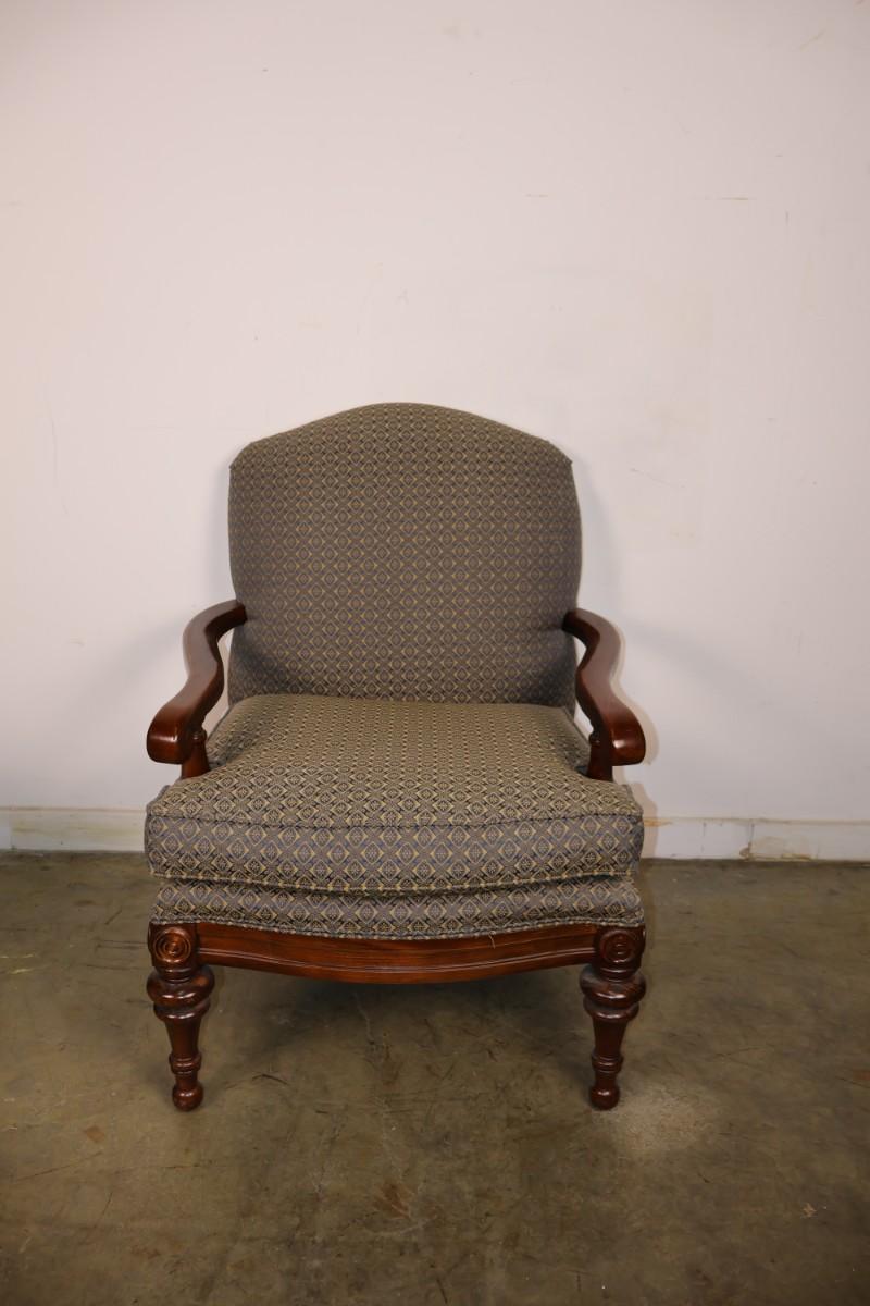 Fairfield Chair Custom Upholstered Arm Chair with Blue & Gold Fabric