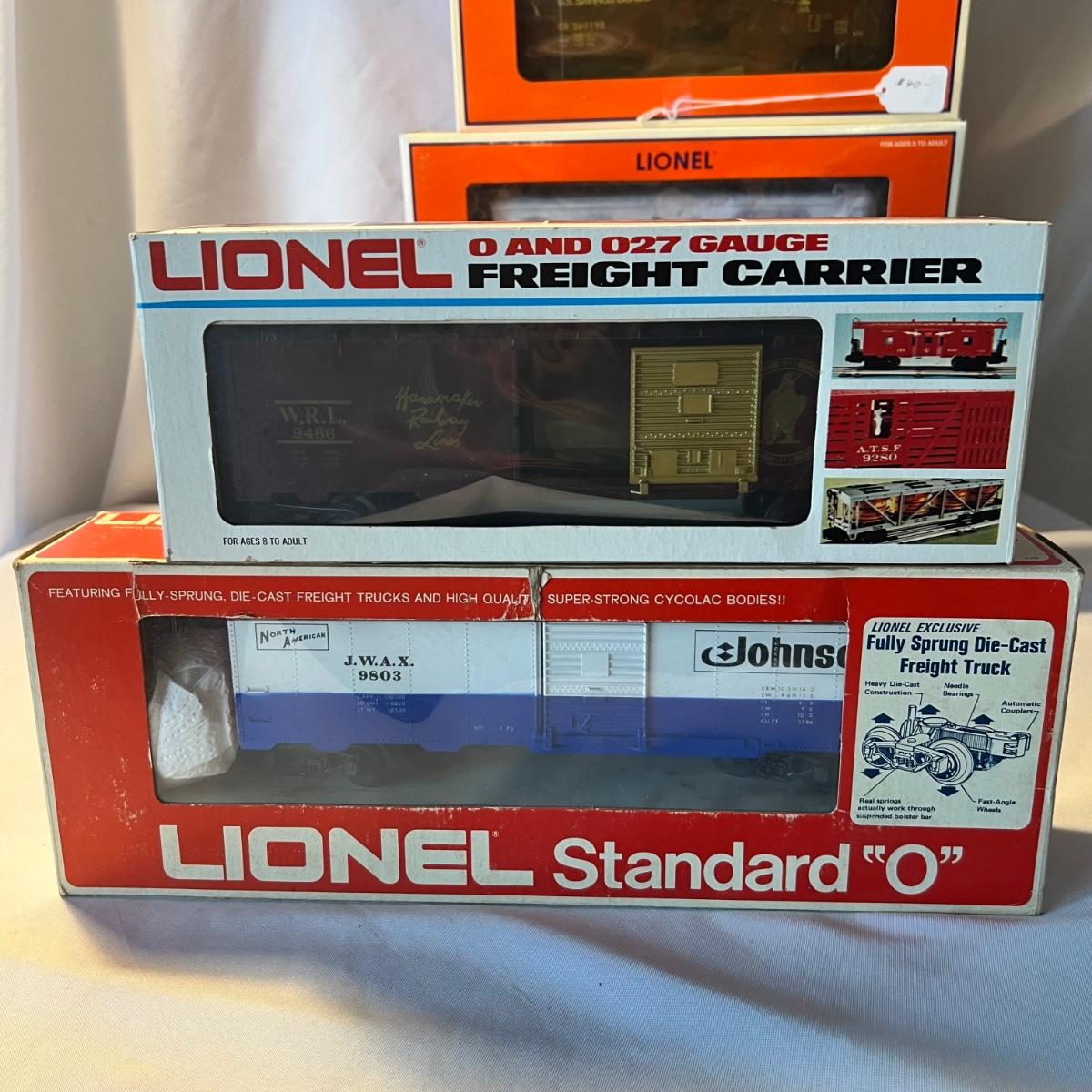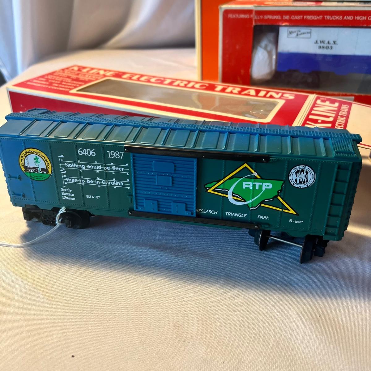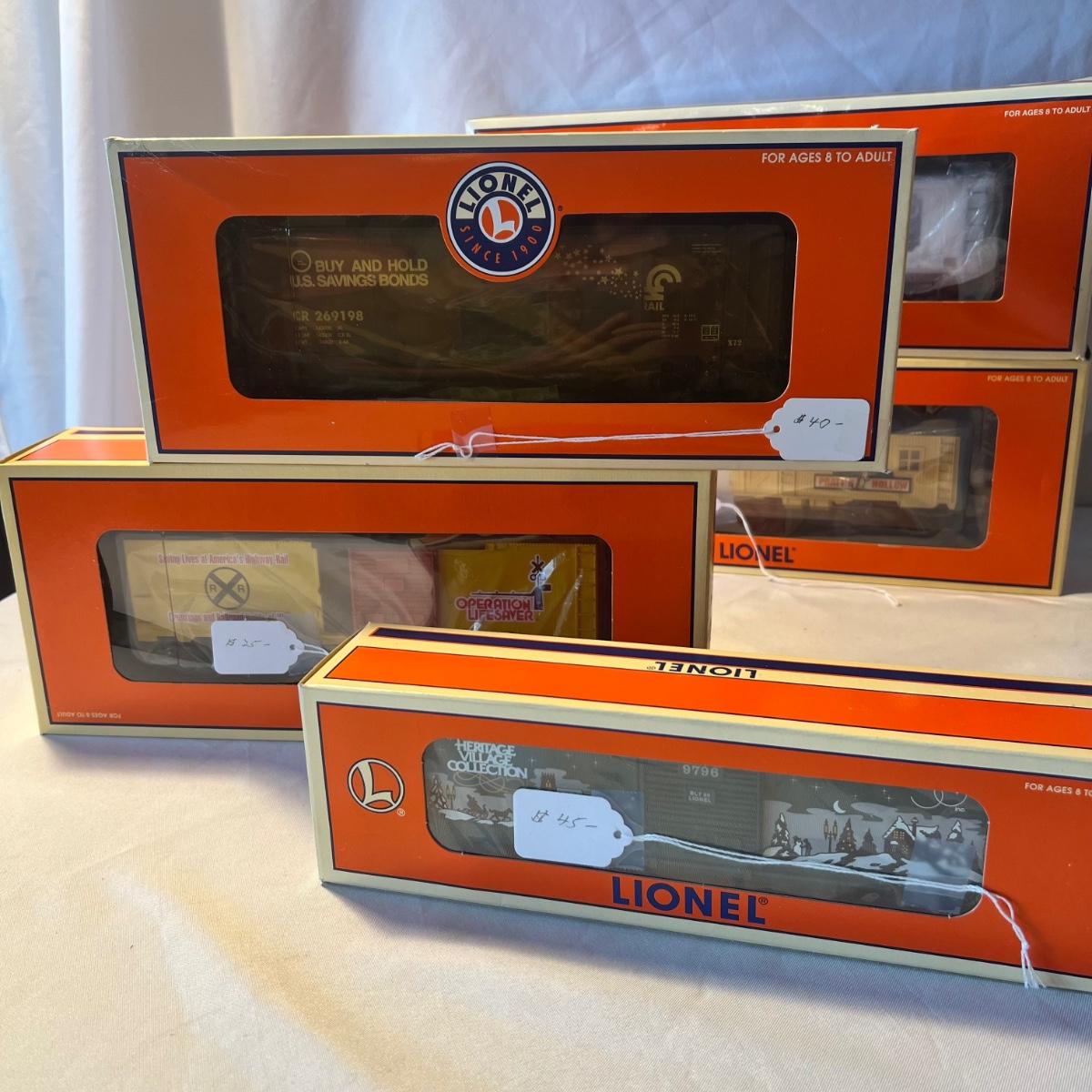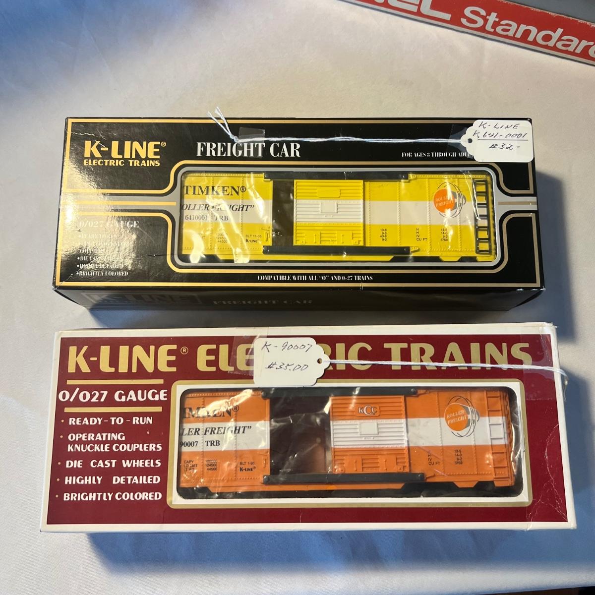 Five K-Line and seven Lionel cars altogether with original boxes. See photos for full inventory and more information. Please note that any price tag seen on an item was not put there by Sterling Transitions and does not reflect the current value of the item.