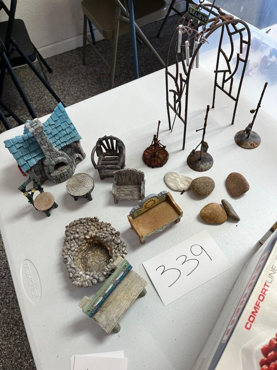9 Fairies, 1 Tree, 2 Benches, 2 Chairs, 1 Table, 1 Fairy House