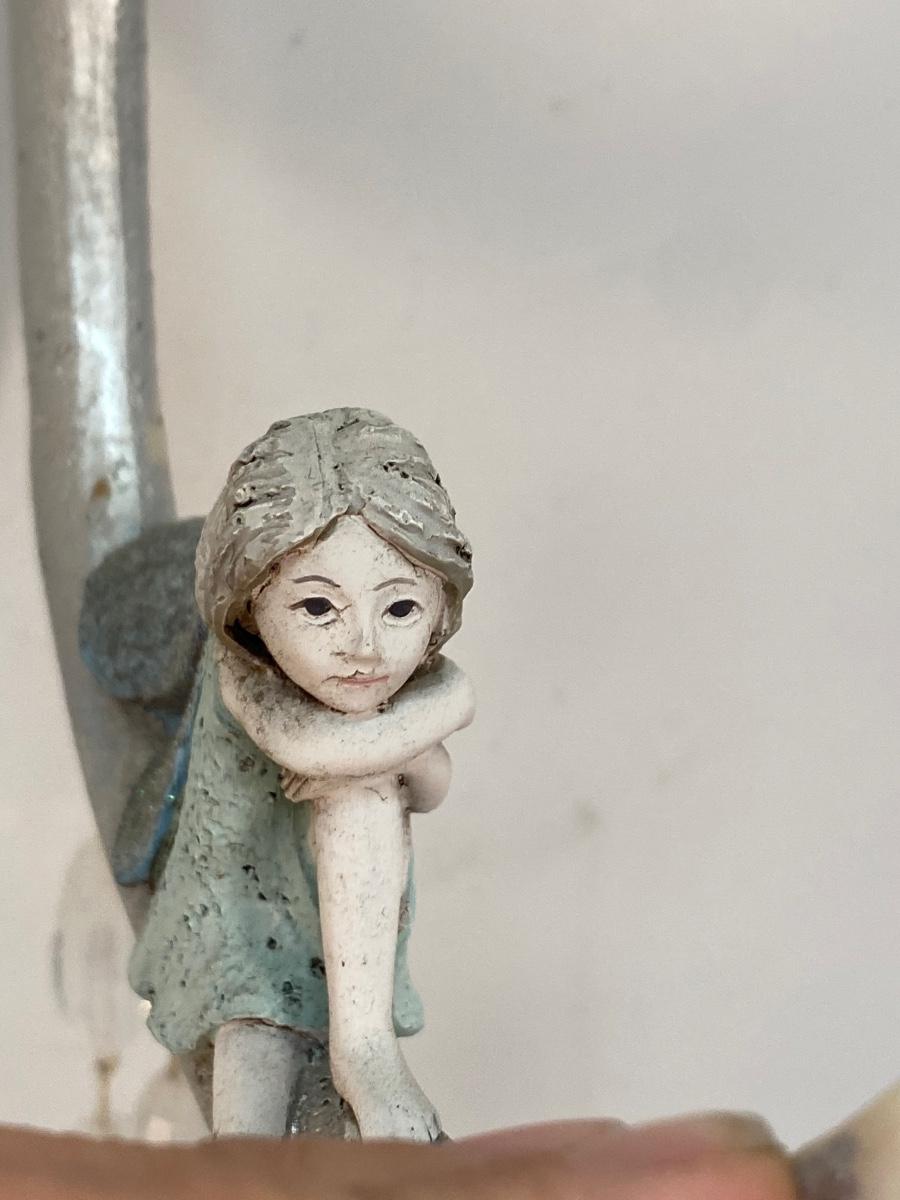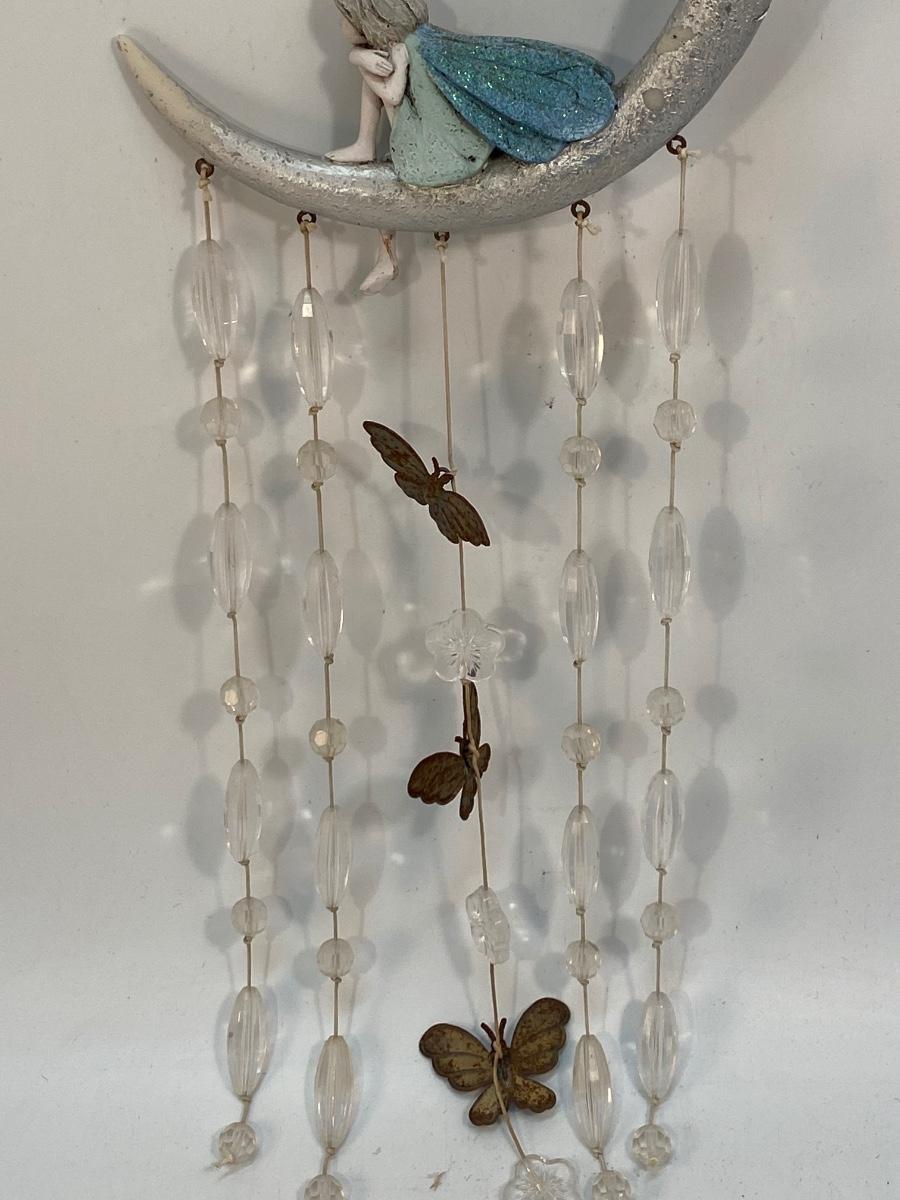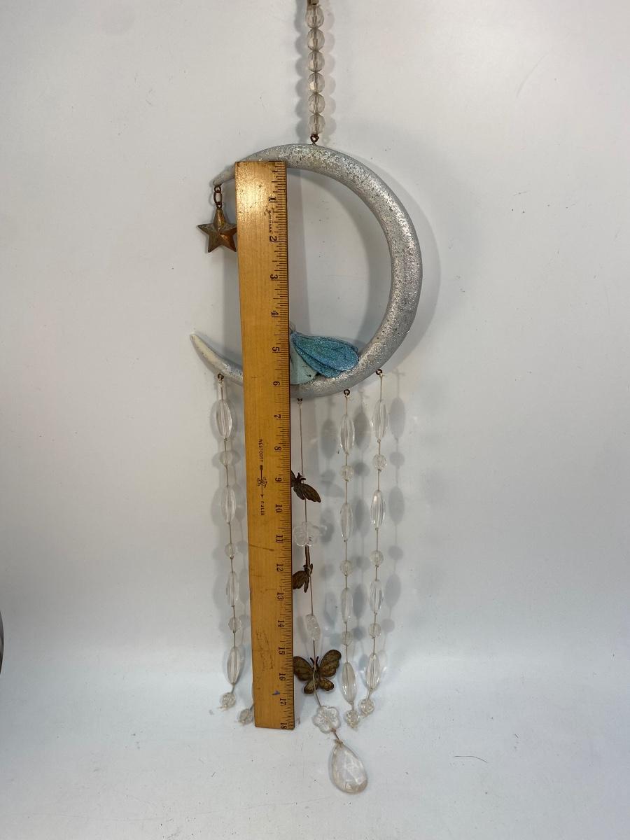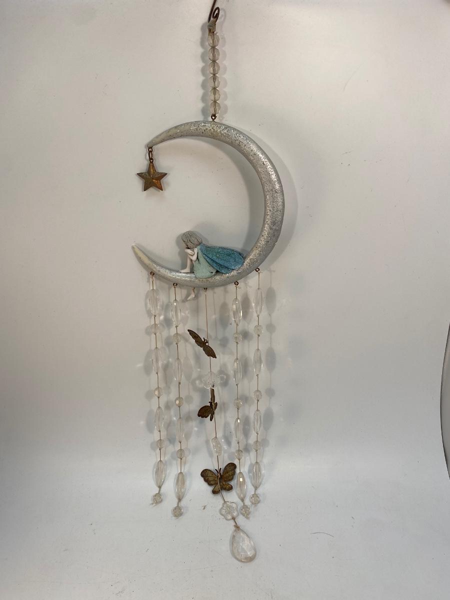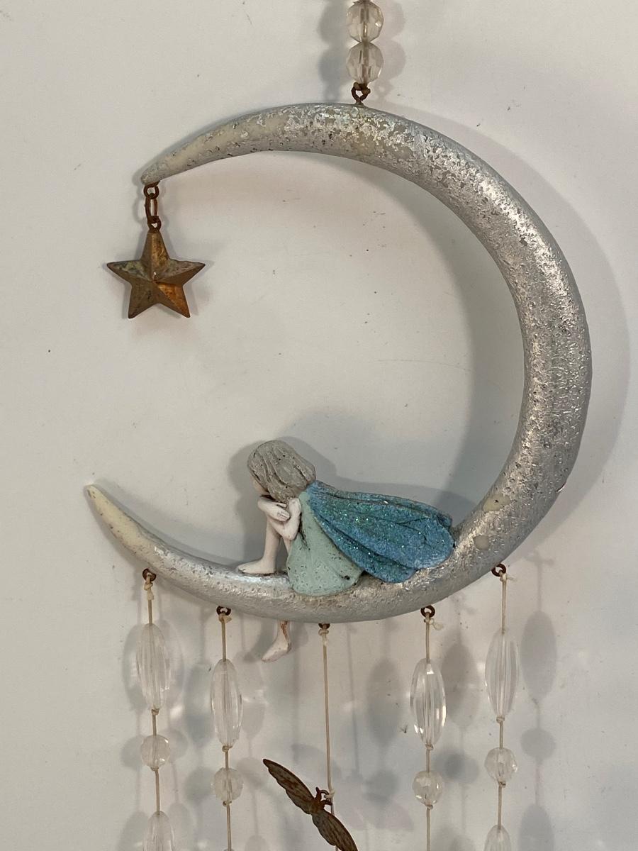 Fairy Sitting on the Moon Wind Chime Suncatcher Garden Yard Art. In good weathered condition.