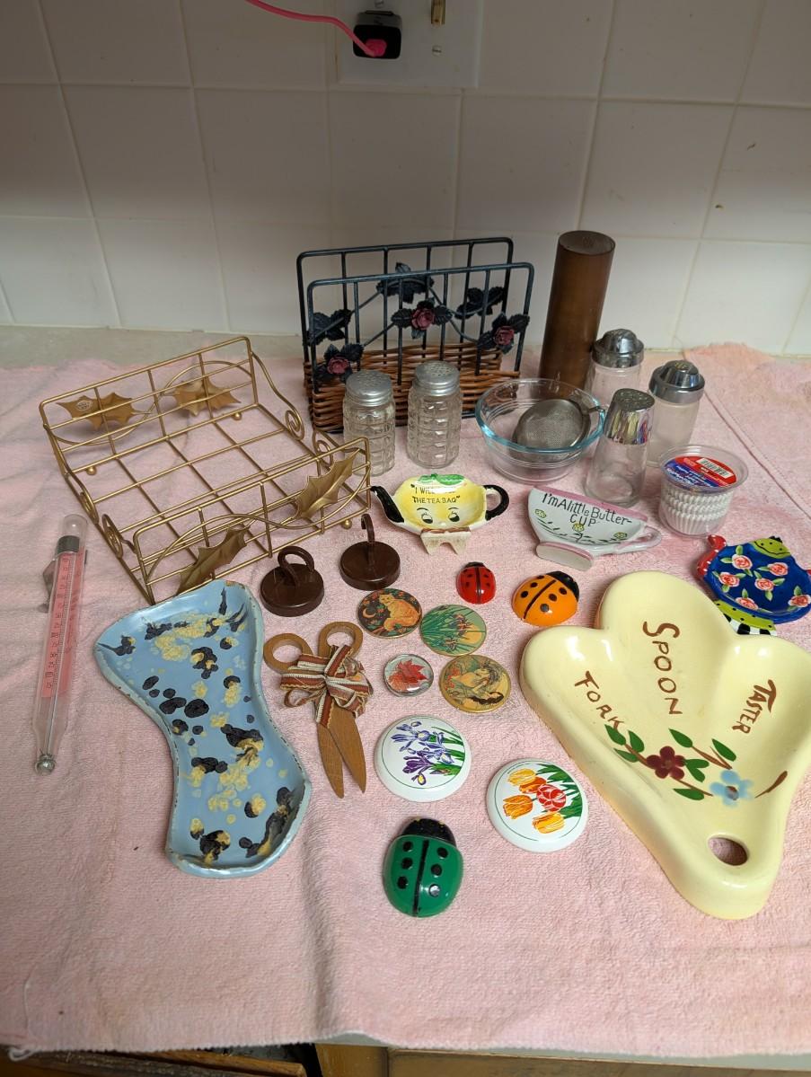 Nice group of Kitchen items including vintage spoon rest.
