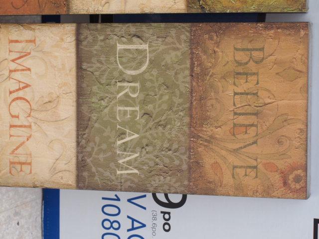 Faith. Hope. Love Wall Hanging and BELIEVE. Dream. Imagine about 12 X 24