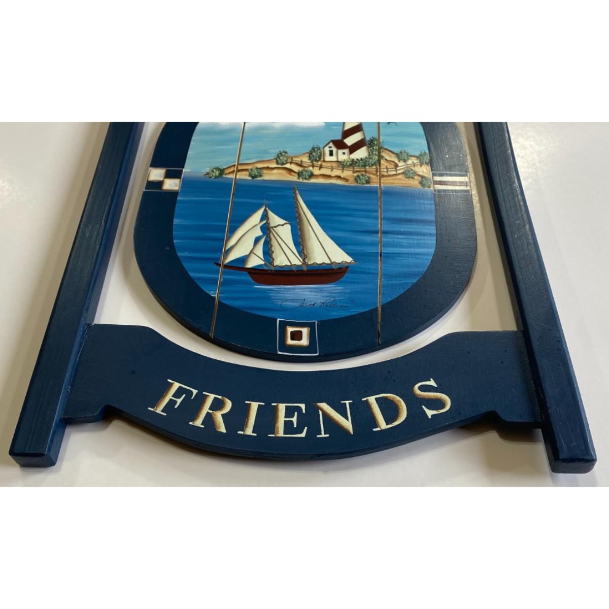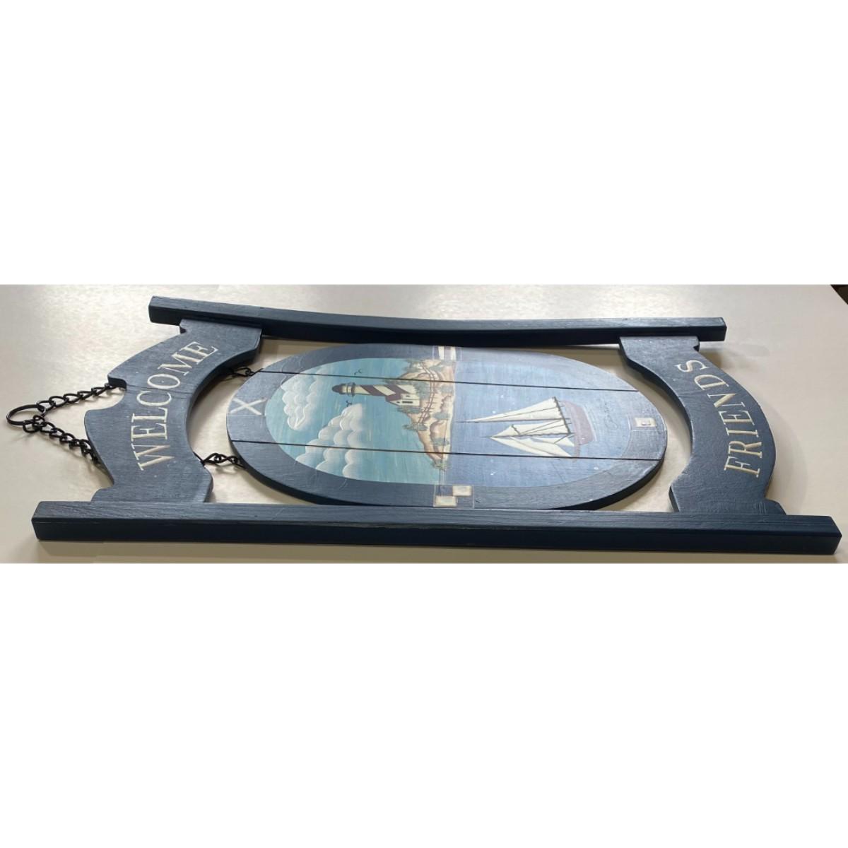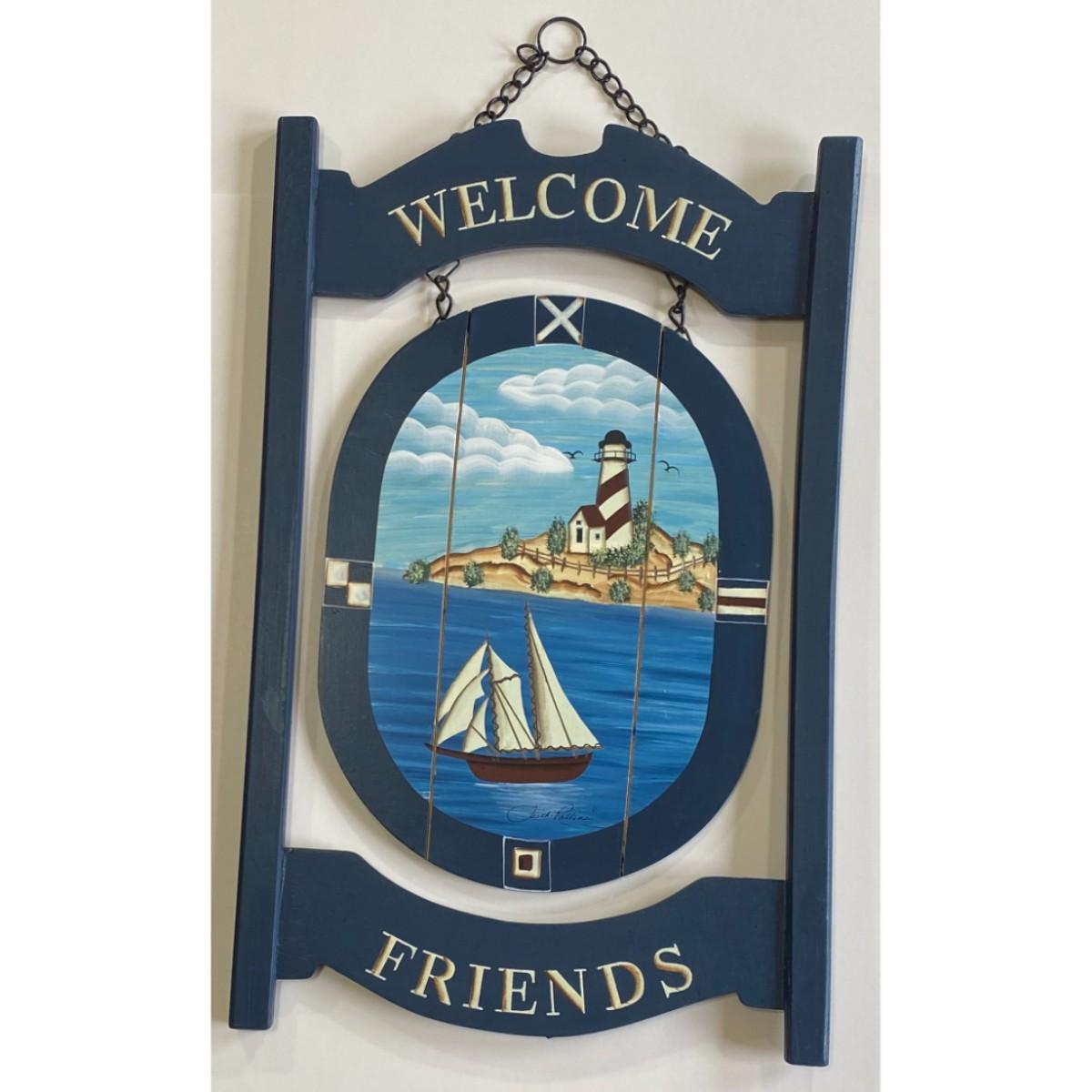 Faith Rollins Welcome Friends Wood Nautical Sign Lighthouse Boat Ocean Blue