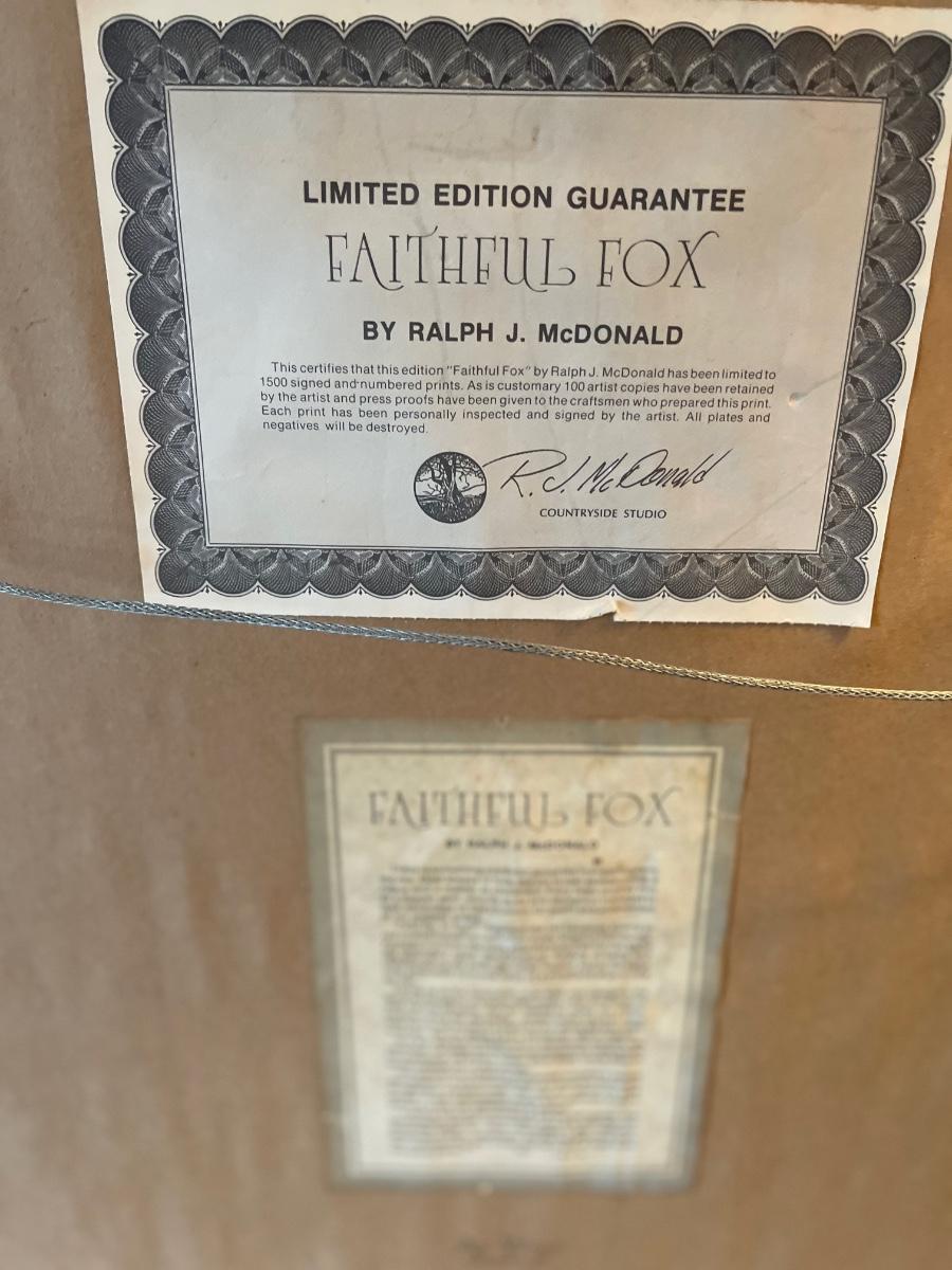 Faithful Fox by RJ McDonald S/N 460/1500 Framed