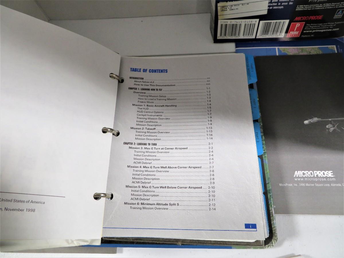 Vintage Lot FALCON 4.0 Video Game PC Computer Handbooks, Cadets Guide, Map, PRIMA's Strategy Guide & FIRST EDITION November 1998 Special Edition Binder.
