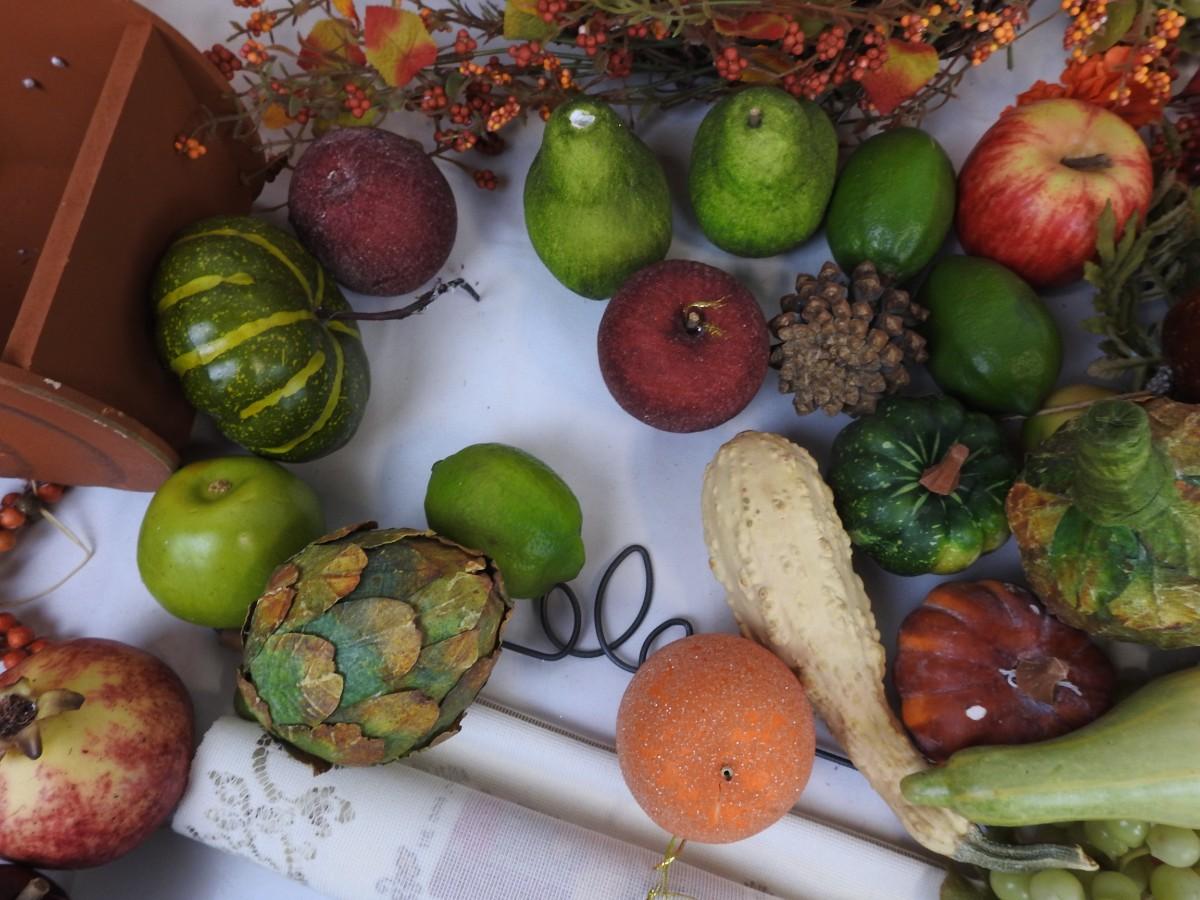 Fall and Thanksgiving Decor: Fake Fruit and Vegetables, Pumpkin Decor